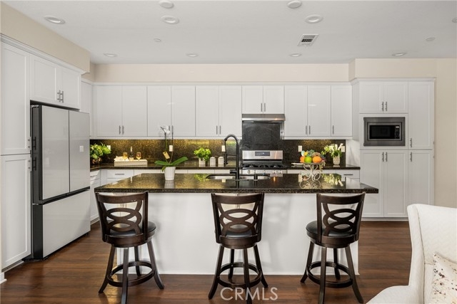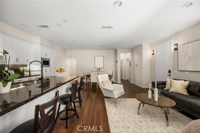 Welcome to this beautifully upgraded end-unit Smart Condo with townhome-like features, perfectly situated in the sought-after Agave community of Portola Springs. This residence offers refined California living on a quiet, tree-lined street, with a layout that blends comfort, style, and function. The open-concept main living space is filled with natural light, featuring rich hardwood floors, custom window treatments, and an inviting ambiance. The gourmet kitchen boasts granite countertops, high-end Bespoke Samsung appliances, a large center island, and abundant cabinetry—perfect for culinary enthusiasts and entertaining alike. A downstairs bedroom and full bath provide flexibility for guests or a home office, while upstairs, the spacious primary suite offers a generous walk-in closet, dual vanities, and a sleek walk-in shower. Additional highlights include Smart Home technology, an EV charger, central heating and cooling, in-unit laundry, and an attached 2-car garage. Enjoy a private gated patio for outdoor dining or relaxation, and take advantage of the community’s resort-style amenities—pools, parks, and scenic trails. Located minutes from the Great Park, Irvine Spectrum, Woodbury Town Center, and award-winning Irvine Unified schools, this home delivers the perfect balance of luxury, location, and lifestyle.