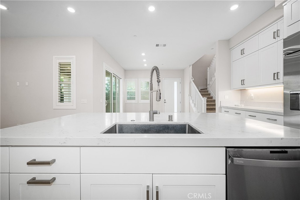 Experience elevated living in this stunning detached residence located in the prestigious Rise Park enclave of the Great Park Neighborhoods in Irvine. Built in 2021 by Lennar, this impeccably upgraded home offers approximately 2,780 square feet of sophisticated living space designed for modern comfort and effortless entertaining. From the moment you enter, you are welcomed by soaring ceilings, abundant natural light, and a seamless open-concept layout that blends the living, dining, and gourmet kitchen areas. The chef’s kitchen showcases quartz countertops, a full designer backsplash, white shaker cabinetry with soft-close features, and premium stainless steel appliances including a built-in refrigerator. Upstairs, three generously sized bedrooms and a versatile second-floor loft provide flexibility for today’s lifestyle. The primary suite offers a private balcony, spa-inspired bath, and a spacious walk-in closet. The expansive third-floor bonus level with its own open-view balcony and built-in wine refrigerator creates the perfect setting for a private office, executive lounge, media retreat, or optional fourth bedroom. Step outside to a beautifully maintained and thoughtfully designed private backyard patio — an ideal space for outdoor dining, entertaining, or quiet relaxation. Located within the award-winning Irvine Unified School District and just a short walk to Portola High School and Solis Park School, the home also enjoys exclusive access to the resort-style amenities of Great Park — including multiple pools, parks, sports courts, and recreation facilities. Conveniently positioned near Woodbury Town Center, Irvine Spectrum Center, FivePoint Amphitheatre, and John Wayne Airport, this home offers the perfect balance of luxury, location, and lifestyle. A rare opportunity to own a turnkey home in one of Irvine’s most sought-after communities.
