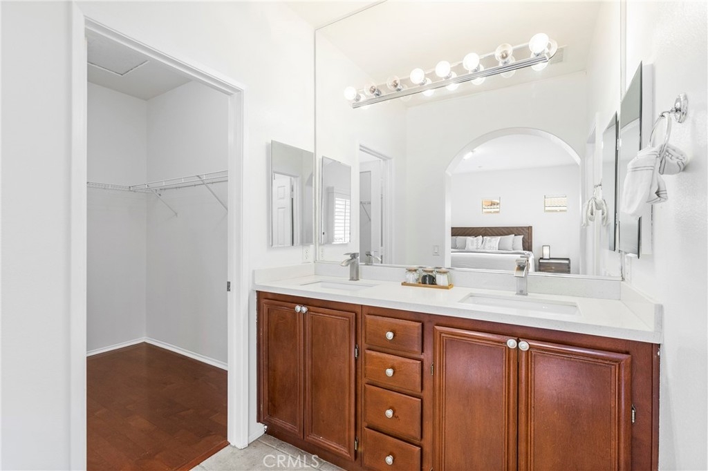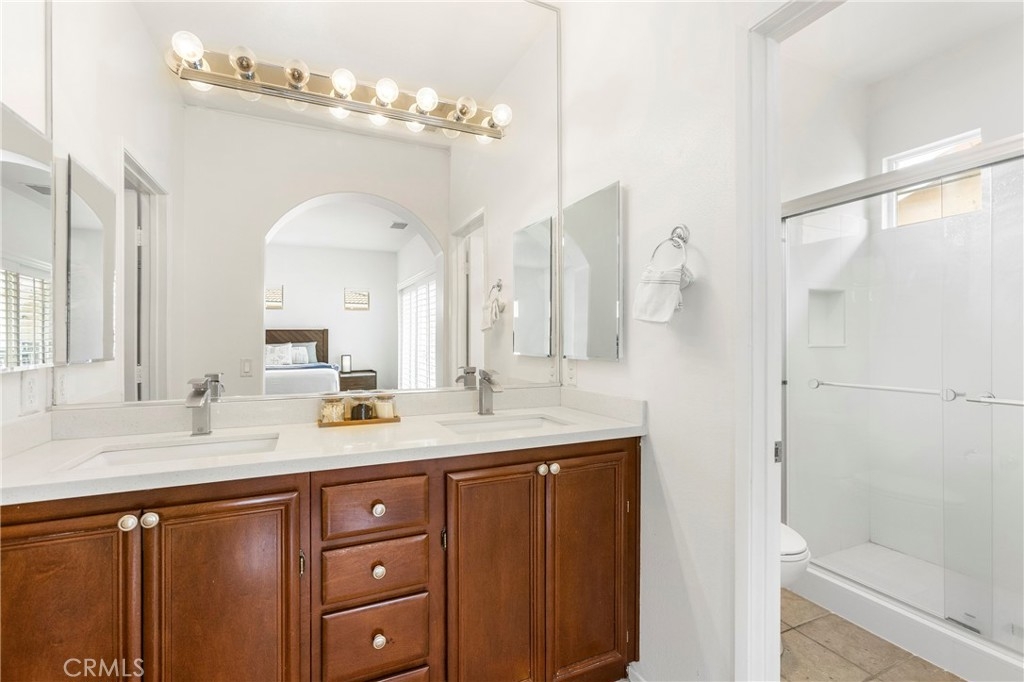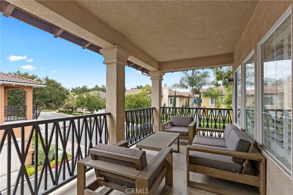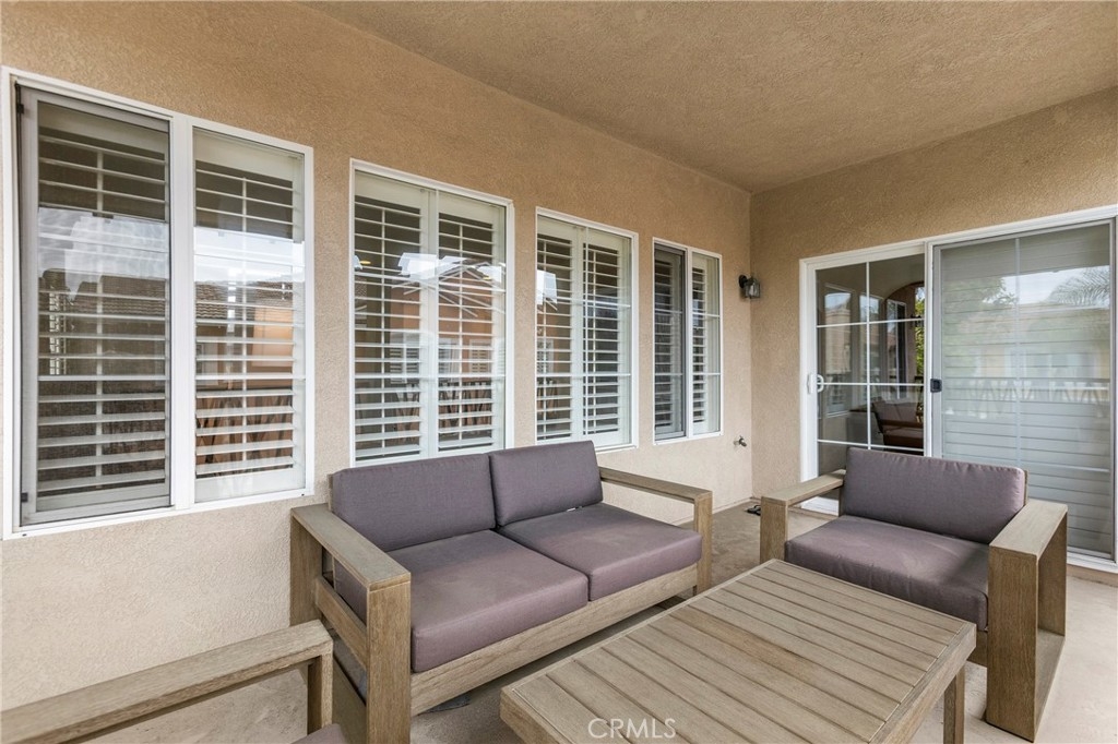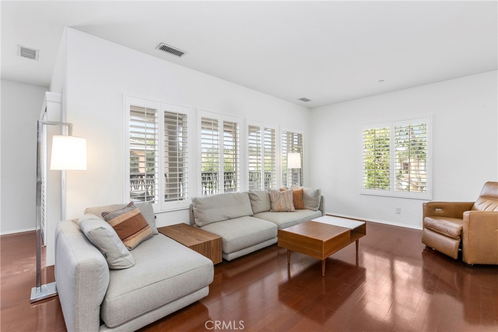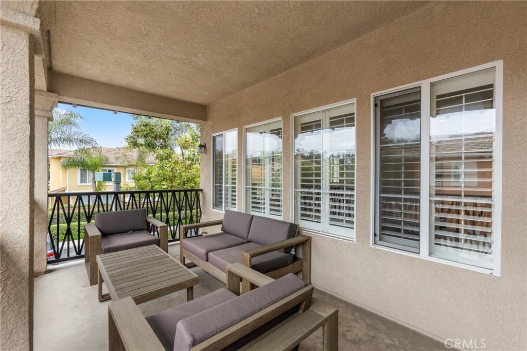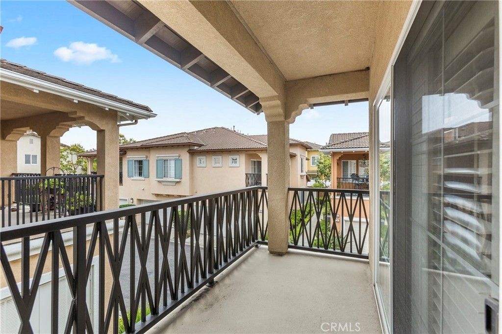 Welcome to this beautifully updated home in the desirable Montilla neighborhood of Oak Creek. This 2-bedroom, 2-bath residence offers nearly 1,400 sq.ft. of single-level living, blending comfort, peace, privacy, and the everyday convenience in one of Irvine’s most sought-after communities. Set in a coveted corner location, the home is filled with natural light and enjoys an open, airy feel throughout. Rich hardwood flooring flows through the main living spaces, while brand new plantation shutters add timeless style and refined functionality. The living & dining areas open to a peaceful balcony, perfect for entertaining, outdoor dining, or simply relaxing. The thoughtfully designed kitchen features granite countertops, a mosaic tile backsplash, stainless steel appliances, counter seating, and a built-in pantry for added storage. Whether hosting guests or enjoying a quiet evening in, the space is both functional and inviting. The spacious primary suite serves as a peaceful retreat, complete with a walk-in closet, dual vanities, and a beautifully tiled shower. A second private patio provides an ideal place to enjoy your morning coffee or unwind at the end of the day. The secondary bedroom provides space for guests or a home office. The attached two-car garage has direct access and plenty of space for extra storage. Residents of Montilla enjoy access to a pool and spa, as well as the broader Oak Creek amenities featuring multiple pools, parks, basketball and tennis courts, pickle ball courts, and scenic walking trails. This home is located within the award-winning Irvine Unified School District, and is just minutes from UCI, Alton Square, Oak Creek Shopping Center, Irvine Spectrum Center, Hoag hospital, Costco and the beaches of Newport Beach. Outdoor enthusiasts will enjoy easy access to the Quail Hill Trail, and plenty of nearby parks. A rare opportunity to enjoy stylish single-level living, exceptional amenities, and a tastefully designed home, all in one of California’s safest cities.