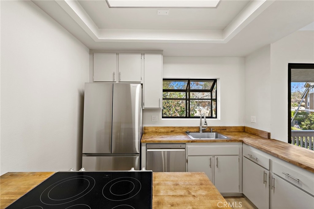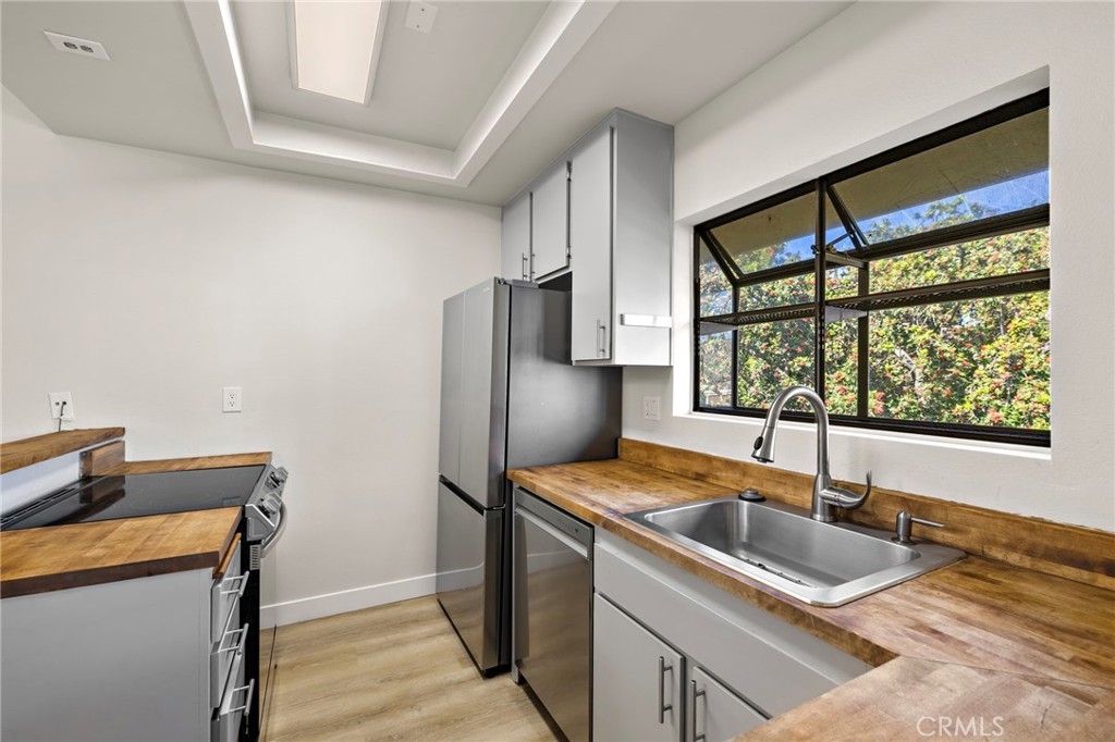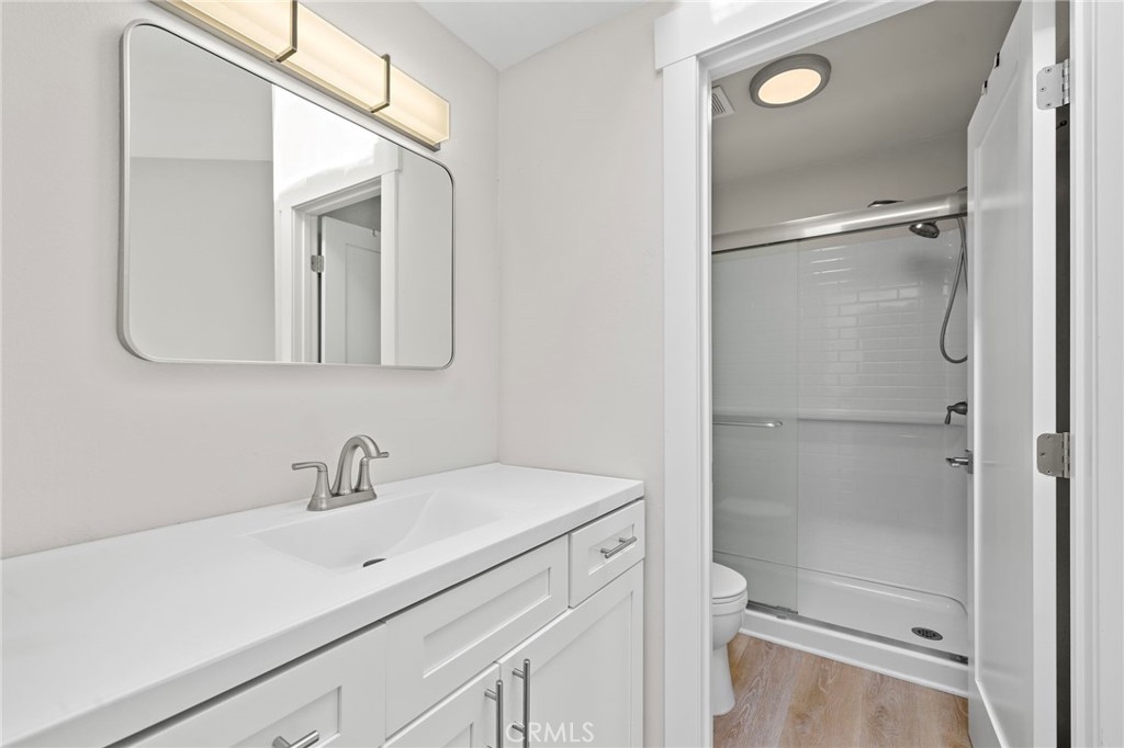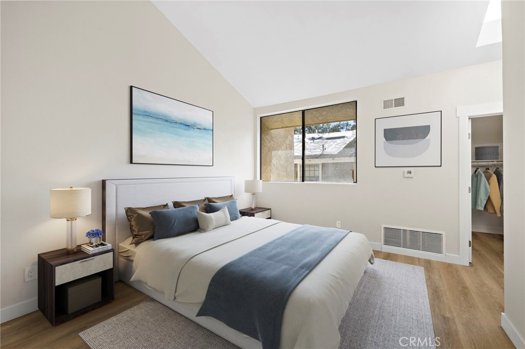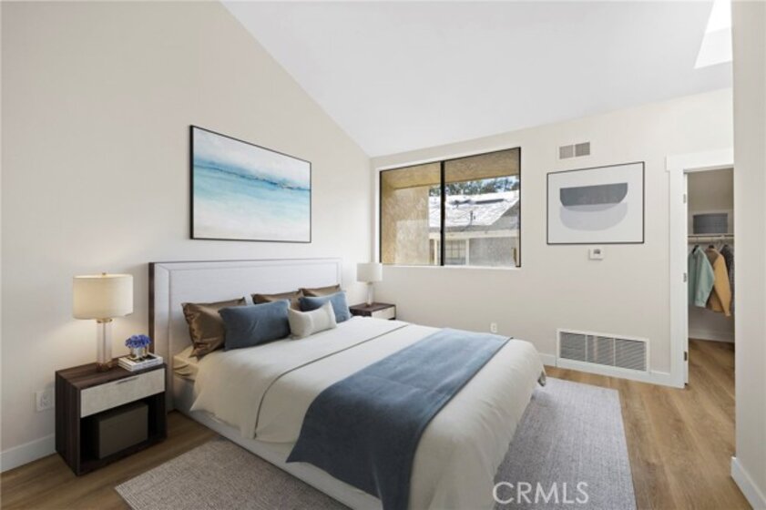 Welcome to this beautifully upgraded upper-level 1 bedroom, 1 bathroom condo located in the heart of Irvine within the highly desirable Lakes Community. This bright and light-filled home features vaulted ceilings and abundant natural light throughout. Extensively updated within the last year, the condo offers luxury vinyl plank flooring, new interior doors, fresh paint, all new stainless steel appliances, a fully renovated bathroom, and a new HVAC system. The kitchen is accented with custom wood-style countertops, adding warmth and character with a unique, designer touch. The spacious bedroom includes a walk-in closet, and the unit comes complete with a washer and dryer for added convenience. Step out onto your private balcony and enjoy peaceful water views, or take advantage of the resort-style HOA amenities including a pool, spa, tennis courts, and scenic walking paths throughout the lakes. Additional highlights include an individual carport and a prime location close to shopping, dining, freeways, and all that Irvine has to offer.