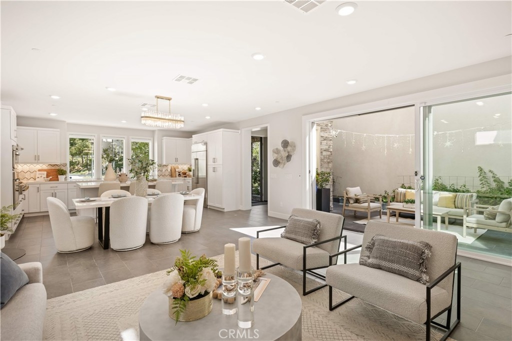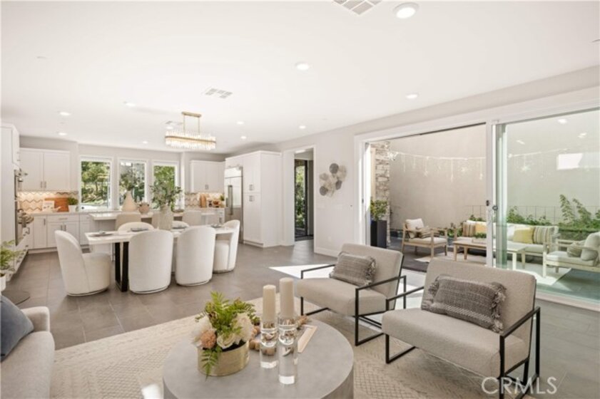 Located in the highly desirable Rise Park community within Great Park, this well-positioned home enjoys a premium setting directly facing an open greenbelt, offering a bright, open view and a peaceful sense of space. The property is also part of the highly sought-after Irvine Unified School District (IUSD). The location is exceptional, just a short walk to the Rise Park pool, clubhouse, parks, and schools, and approximately a 5-minute walk to Portola High School, a newer campus built with an investment of approximately $300 million and rated 10/10 on GreatSchools. Inside, the home features a thoughtfully designed open-concept layout with the living room, dining area, and kitchen seamlessly connected. The living room is enhanced by large floor-to-ceiling sliding glass doors that open to the backyard, while an adjacent side yard adds additional light, airflow, and outdoor usability. Together, these features create a bright and airy space with a seamless indoor-outdoor connection. The kitchen is upgraded with quartz countertops and a designer backsplash, combining style and functionality. Upstairs offers 3 bedrooms plus a versatile loft, one of the home’s standout features—ideal for a home office, family room, or flexible living space. The home has been owner-occupied and well maintained, reflecting pride of ownership throughout. Situated in the heart of Great Park, one of Irvine’s most dynamic and fast-growing communities, residents enjoy access to resort-style amenities, vibrant outdoor spaces, and exciting future developments, making this an exceptional opportunity for both lifestyle and long-term value.