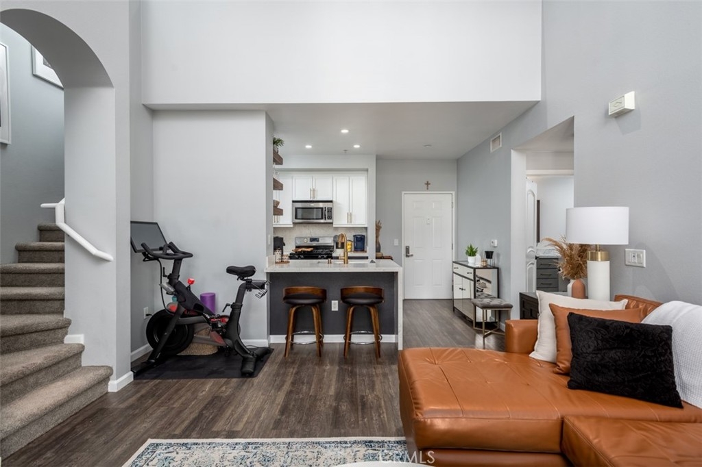 First time to hit the market, this one-of-a-kind, beautifully remodeled Top Floor Penthouse unit is available in the highly sought after, Avenue One complex. This 2BR/2BA with spacious loft allows for approximately 1,260 square feet of living space, accompanied by 18-foot soaring ceilings, providing amazing natural light as well as peekaboo sunset views off of the private patio. Loaded with endless upgrades, including a complete custom kitchen with modern, two-tone cabinetry, Caesar Stone Quartz countertops with cascading, waterfall edge, updated flooring, and LED lighting powered by Lutron lighting control system throughout. The Master bedroom comes with ensuite bath and walk-in closet, with the guest bedroom having direct access to the patio. This unit comes with two, side-by-side assigned parking spaces, plus endless, resort like association amenities including: pool, spa, putting green, playground, BBQ, fire pit, indoor basketball court, fitness center, club house, media lounge and business conference center. The property is within minutes from John Wayne airport, UCI, Diamond Jamboree, top restaurants, shopping, Fashion Island and Newport Beach. Look no further, for your permanent luxury retreat.