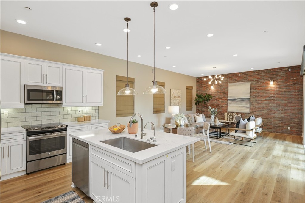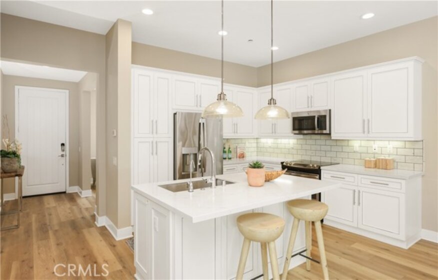 Discover a rare opportunity to own a beautifully upgraded single-story Brio home by Shea Homes in Irvine’s highly sought-after Great Park/Beacon Park community. This immaculate corner-unit residence offers 3 bedrooms, 2 bathrooms, and a spacious private patio/courtyard, all within a thoughtfully designed single-level layout that blends modern elegance with effortless comfort. Step inside to an inviting open-concept living space enhanced by stylish wood flooring, tall ceilings, abundant natural light, and custom window blinds throughout. The airy living area flows seamlessly into the contemporary kitchen featuring quartz countertops, upgraded cabinetry, and premium finishes—perfect for both daily living and entertaining. A versatile third room provides the ideal option for a bedroom, home office, or creative studio. Experience true indoor-outdoor living with a serene courtyard where matching wood pattern tile flooring creates a smooth connection between interior and exterior spaces. The attached two-car garage offers direct access and generous storage. Living in Beacon Park feels like a five-star resort. Community amenities include multiple pools and spas, outdoor kitchens with BBQ grills, pizza oven, smoker, lush lawns, playgrounds, club rooms, and sports courts, plus expansive fields for basketball, beach volleyball, and soccer. Wide streets and plentiful guest parking ensure everyday convenience. Located within the award-winning Irvine Unified School District, this home is a short 5-minute walk to Beacon Park School and is zoned for the highly acclaimed Portola High School. Ideally situated near world-class dining, shopping, parks, freeways, beaches, John Wayne Airport, and South Coast Plaza. Move-in ready and meticulously maintained, this exceptional home offers incredible value in one of Irvine’s most desirable master-planned communities. Don’t miss this chance to experience resort-style living at its finest!
