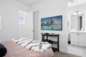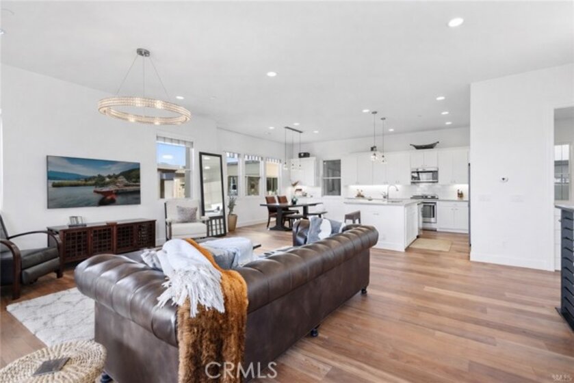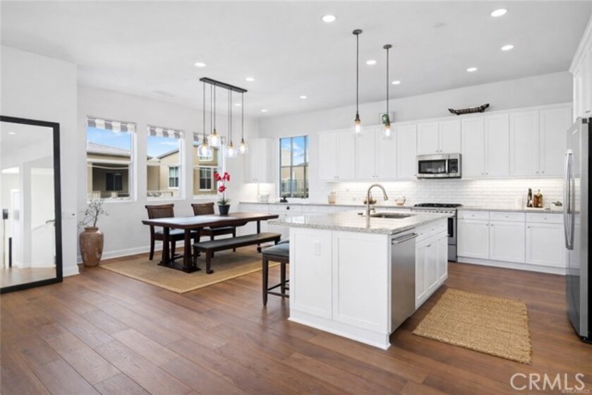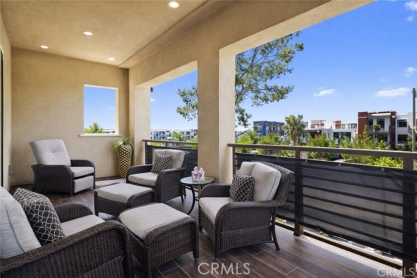 Rare upper-level corner residence offering 180° panoramic city lights and sunset views. Located in the prestigious Brio Collection, this home features Shea Homes’ highly sought-after Plan 2, positioned as a premium upper corner unit. Meticulously maintained and in near-new condition throughout. The guest bathroom can be easily converted into a 3/4 bath, as the original floor plan was designed as a 3-bedroom, 3-full bath layout. The open-concept kitchen and living area are filled with natural light and excellent airflow. Interior highlights include a custom barn door, rich hardwood flooring, and upgraded carpeting. Sliding glass doors from the living room open directly to a spacious private view deck, showcasing breathtaking 180° city lights and sunset views—perfect for seamless indoor-outdoor living. The chef-inspired kitchen is equipped with granite countertops, a full subway-tile backsplash, a complete suite of stainless-steel appliances, and a built-in wine refrigerator, blending style with functionality. Ample and convenient guest parking is available directly in front of the garage. Enjoy walking-distance access to Beacon Park and Great Park, along with an exceptional array of community amenities including five parks, three full-size basketball courts, two junior Olympic–size swimming pools, four spas, three clubhouses, an arts and crafts center, multiple picnic areas, and a greenhouse. The property is located within the award-winning Irvine Unified School District, zoned for Portola High School. The location is outstanding—just steps from the modern Beacon Park K–8 School, a five-minute drive to Portola High School, and close to Woodbury Shopping Center, Irvine Spectrum, John Wayne Airport, and Kaiser Permanente Medical Center, with easy access to I-5, 241, 133, and 73 freeways for effortless commuting. (Photos are from a previous listing and may not reflect current furnishings.)