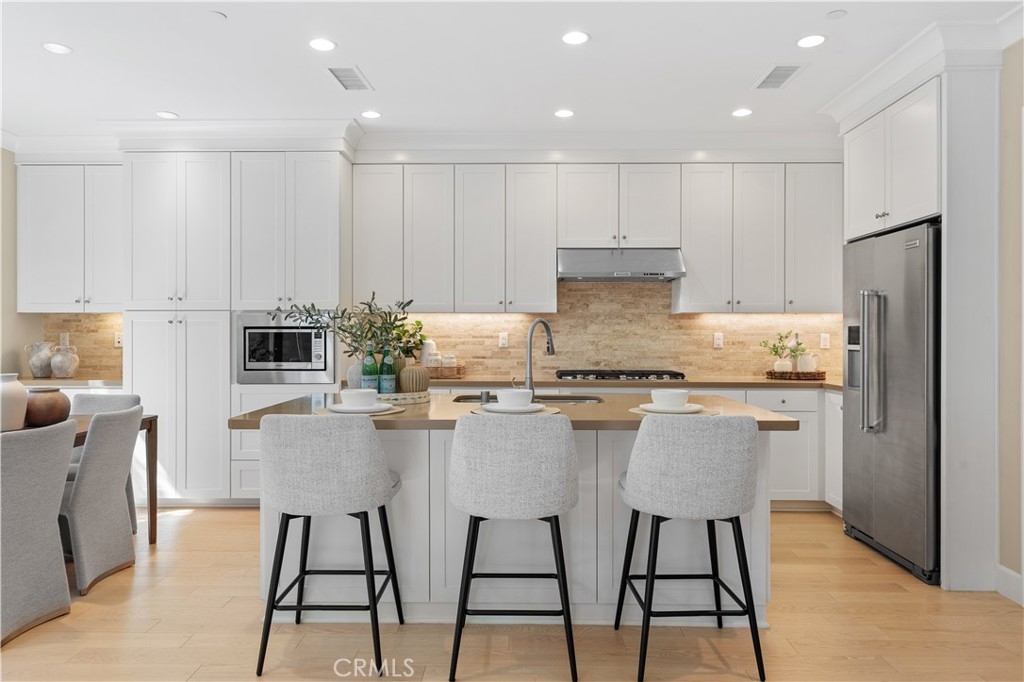 Nestled in the exclusive Orchard Hills Community. This is the house fulfilled all your needs. 3 Bedroom 2.5 bath with open concept first floor. Highly upgraded, solid wood floor throughout the house. Real stone backsplash in the chef's kitchen connected between spacious living area and dinning area. 3 Bedrooms and 2 bath including one master suite composed of the second floor. Well maintained like new. Plenty of sunshine through out the house. Award wining Irvine Unified school district. Walk distance to Northwood high and orchard hills shopping center. You won't miss this one as your next home.