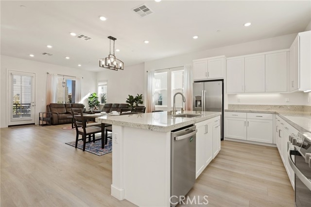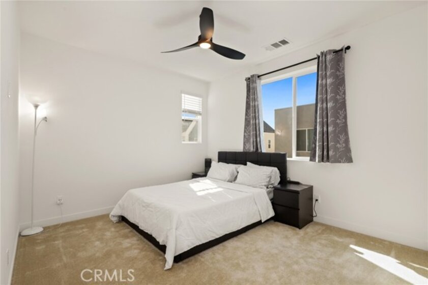 Incredible Value — Just Dropped to $1,098,000! Best value in the neighborhood with unbeatable location and upgrades. Welcome to 257 Sash, a beautifully upgraded Lennar-built Mulberry corner unit in the heart of Irvine’s Great Park. Positioned on a premium lot with no front-facing neighbors, this residence offers both privacy and convenience—just a short stroll to Solis K-8 and Portola High School. The thoughtfully designed floor plan includes 2 bedrooms, 2.5 baths, a versatile main-level flex space, and two private balconies spanning approximately 1,754 sq. ft. of living space. Highlights include solar panels (leased), luxury vinyl plank flooring on both living levels, upgraded carpet with premium padding, custom window coverings, recessed LED lighting, ceiling fans, and a generously sized laundry closet with washer and dryer included. The chef’s kitchen is appointed with a spacious island, granite countertops with full backsplash, shaker cabinetry, and stainless-steel appliances. Additional upgrades include: whole-home water filtration, water softener, reverse osmosis drinking system in the kitchen, Alexa-compatible smart thermostats, Ring security system with motion/glass break sensors, and an Arlo exterior camera system with solar charging. Residents enjoy the best of Great Park living with access to multiple pools, clubhouses, fitness centers, over 25 tennis courts, basketball courts, parks, BBQ and picnic areas, and more. Conveniently close to Irvine Spectrum, Woodbury Town Center, John Wayne Airport, Kaiser Permanente, and easy access to the I-5, 405, 241, 133 & 73. Zoned for the award-winning Irvine Unified School District.