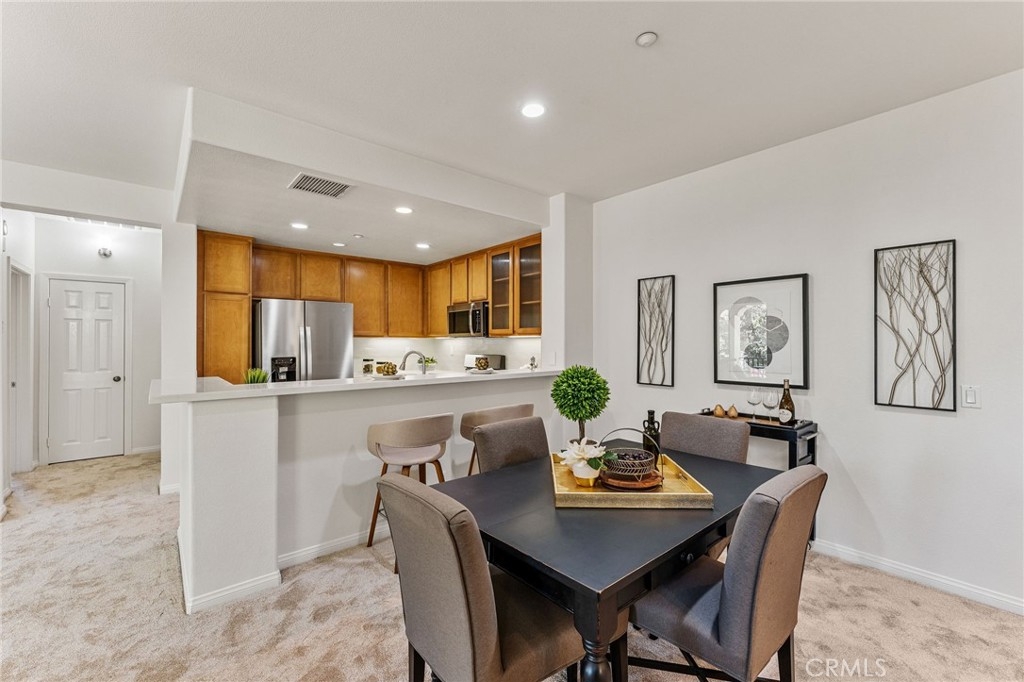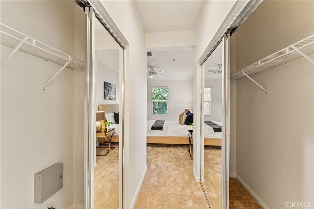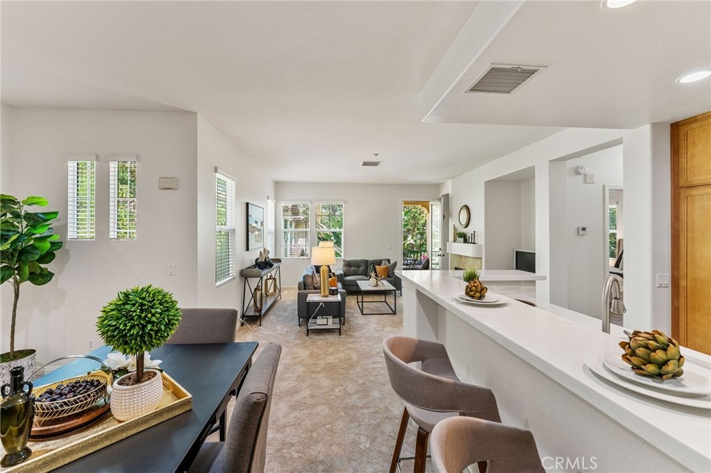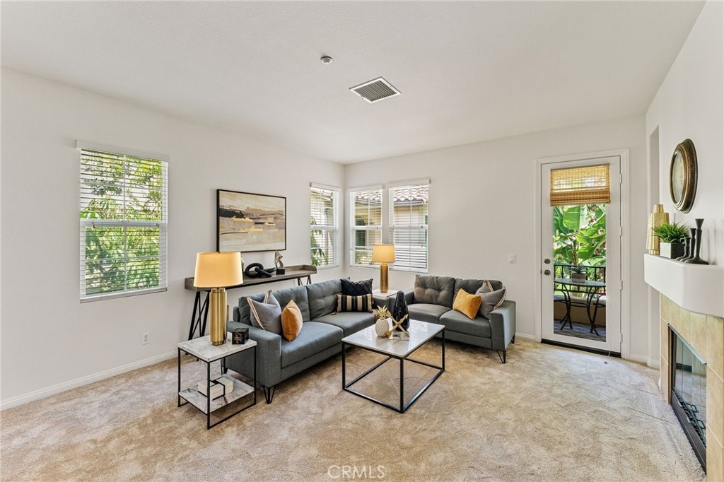 Beautifully updated carriage unit condo, with no one above and your garage right below, in a prime Quail Hill location! Enter on the main floor but all living areas are on one level, upstairs. The floor plan is set up to showcase this inviting, open concept, single level living condo with all of its windows! The large kitchen was just updated with brand new stainless steel Whirlpool appliances, the refrigerator, the range and dishwasher, too! It has Quartz counters, a custom backsplash, a large breakfast bar and is open to the living and dining areas! The interior was just painted and brand new neutral carpet was just installed as well! Move-in ready and then some! Conveniently, the entry, the kitchen and baths are tiled. The spacious bedrooms with ceiling fans are designed and located with privacy and comfort in mind! The primary bedroom is spacious and has mirrored wardrobes and an ensuite with a dual vanity and privacy for the shower. The secondary bedroom is spacious and has direct access to the hall bath. And there is a built-in desk nook and a cozy fireplace, as well! You will love the private balcony overlooking the peaceful, lushly landscaped courtyard with a pretty bubbling fountain. There is a two car, side-by-side, garage with direct access into the home. Lots of room for storage in the garage and as soon as you walk into the home, lots of storage room in the finished closet under the stairs too! All this plus the amazing Quail Hill HOA resort-style amenities; Including pools, tennis courts, sports courts, parks, and a fitness center. Whatever your lifestyle, this is the perfect location! Whether you enjoy hiking the picturesque 2.8 acre Quail Hill Trailhead trails or dining, or shopping or coffee at Quail Hill Shopping Center or conveniently getting to wherever you need to go with major freeways not far off! That includes all the shops & dining at South Coast Plaza or the Irvine Spectrum or the beautiful Newport Beaches, and we didn’t even mention the top rated schools! Such an amazing location.