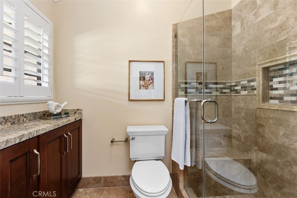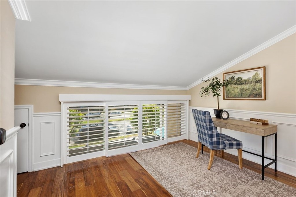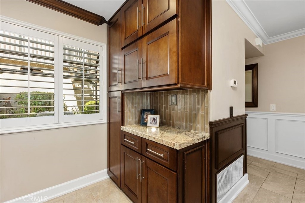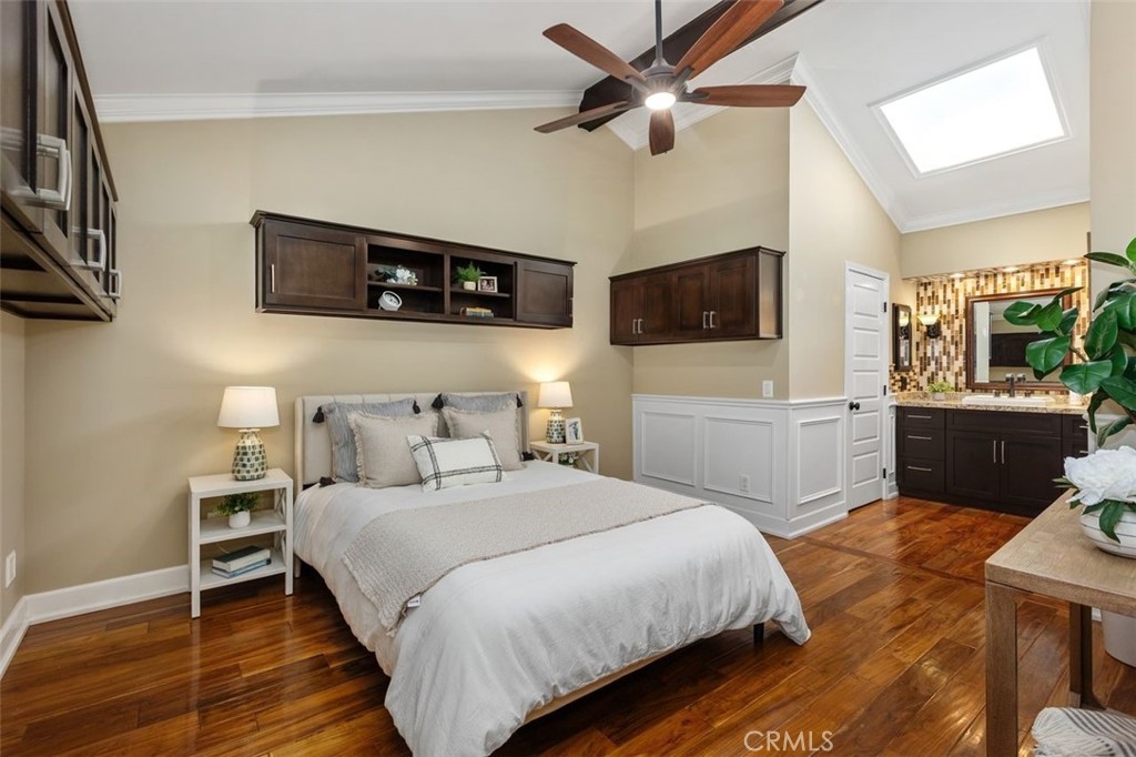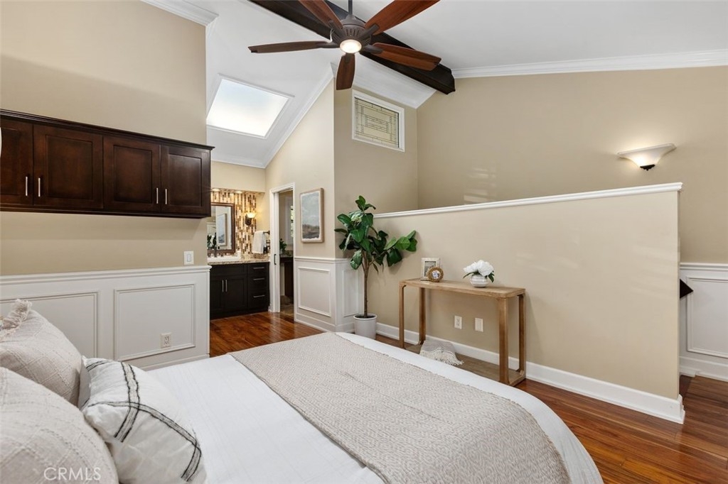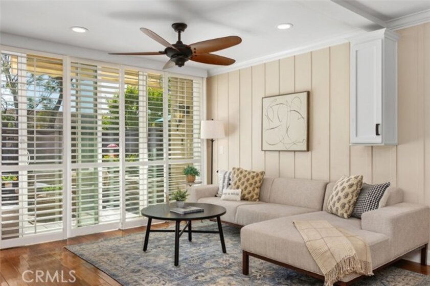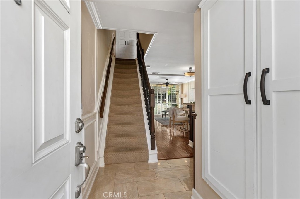 Nicely upgraded 1 bedroom plus office townhome in The Lakes community of Irvine. This 1 bedroom, 1.5 bath home offers a rare upstairs office, private fenced patio, and more than $75,000 in improvements. The remodeled kitchen features granite countertops, stainless steel appliances, updated wood cabinetry, extra storage, floor-to-ceiling pantry space, breakfast bar, pendant lighting, and full porcelain tile backsplash. The main living areas offer hardwood floors, recessed lighting, smooth ceilings, plantation shutters, custom wainscoting, crown molding, paneled doors, and a boxed staircase with wrought iron railing. Ceiling fans upstairs and downstairs add comfort. Upstairs, the vaulted primary suite includes a skylight, walk-in closet with organizer, built-in wall cabinetry, and a remodeled bathroom with granite counters, updated vanity with a modern vessel sink, stacked-stone backsplash, framed mirror, and custom walk-in shower. The separate office adds valuable flex space for work, guests, hobbies, or storage. The private fenced patio, one of only 30 in the community, offers paver hardscape, raised stone planter, mature landscaping, retractable awning, built-in BBQ counter, and permanent gas hookup. Additional features include updated HVAC, partial dual-pane windows, GE stackable laundry, smart thermostat, and designer two-tone paint. The Lakes is known for its streams, mature trees, and scenic surroundings, with community amenities that include pools, spas, tennis courts, and HOA dues that include water and trash service. Conveniently located near shopping, dining, trails, and freeway access. No Mello-Roos and low tax rate.