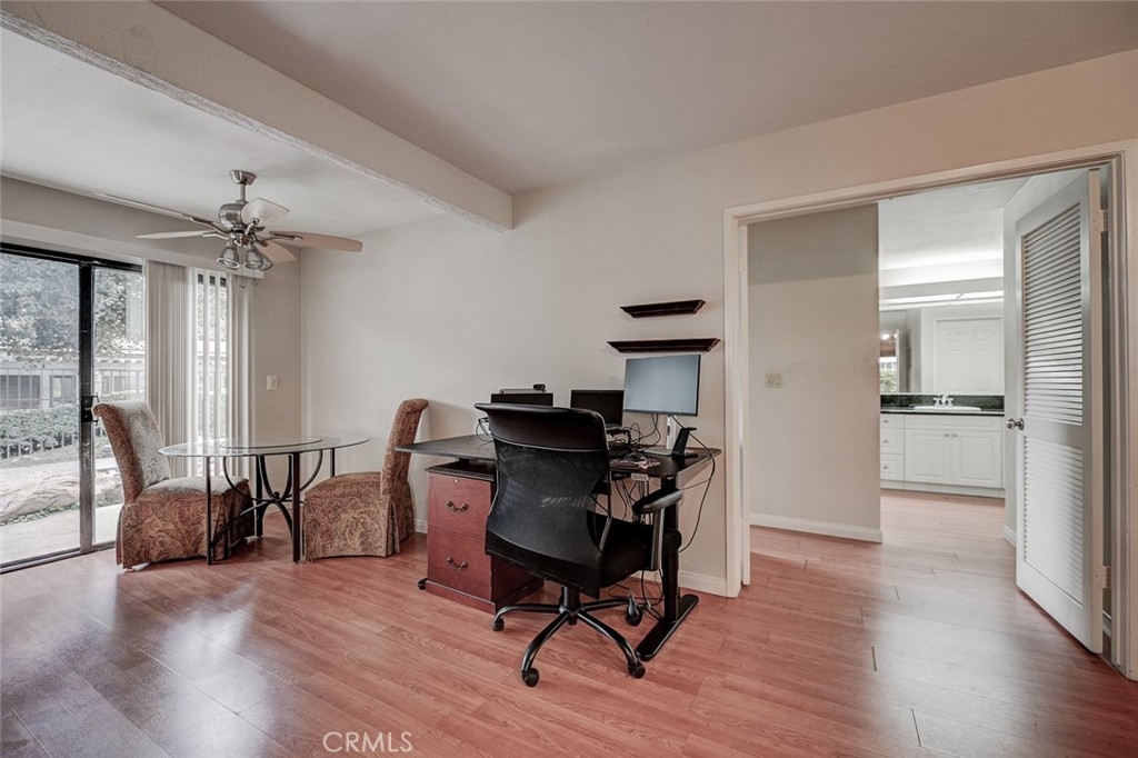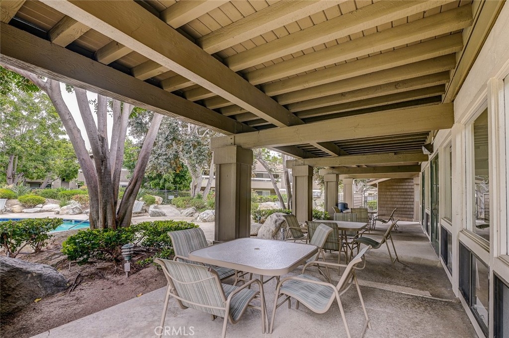 One of the premier locations , located nearby community pool with Vistas to green lush trees with running Zen like streams . End unit location one level located in Northwood Village in the " Springs " . offers many resort like amenities Pools, Spas, Clubhouse , Tennis courts and EV stations at entrance. Upon entering unit flooring is laminate flooring , Newly painted walls , eat in nook area with space for in home office . Kitchen has been upgraded with Maple cabinets , granite counter tops and Bay window. Bathroom offers upgraded granite counters shower/tub combo . Spacious master suite with vistas to scenic beauty. You will be spoiled by having shopping so nearby minutes away to tustin District , Irvine Spectrum for night life and local shopping close by . Public Transportation nearby on Irvine blvd . This is a rare find in this entry level price point or just as an investment property . Onsite building with laundry room and one in community room building . No Mello roos , HOA monthly fee inclusive of trash, water , fire insurance.