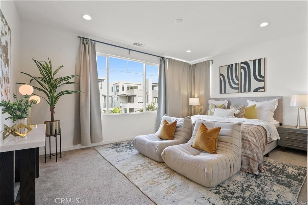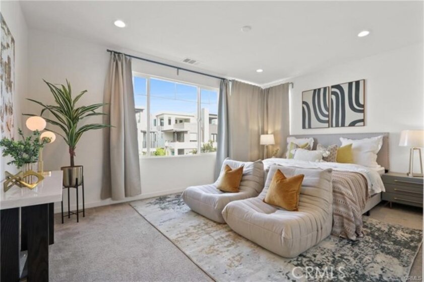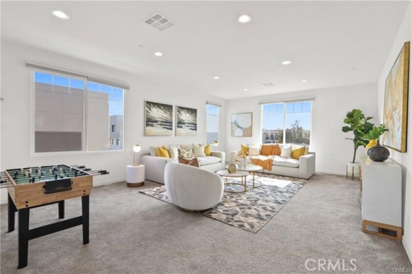 This beautiful townhouses, built in 2019, with only one wall attached, is located in the highly desirable Great Park Modo community of Irvine and features an open floor plan with nearly 10-foot ceilings that create a bright and airy living environment. Upon entry, the upgraded kitchen sits to the left and showcases stainless steel appliances and a walk-in pantry, combining style and functionality, while the living room to the right opens to a private patio through a sliding glass door for seamless indoor-outdoor living. Upstairs, the primary suite offers large windows with neighborhood views and an en-suite bathroom with a generous walk-in closet, while two additional southeast-facing bedrooms provide abundant natural light. The versatile third-floor bonus room can be used as a playroom, office, or media room and features both a private balcony and a spacious deck on opposite sides, perfect for relaxing or entertaining while enjoying community views and glimpses of Saddleback Mountain. Residents of Great Park enjoy access to exceptional amenities including resort-style pools, parks, sports courts, scenic trails, an ice skating rink, and the nearby FivePoint Amphitheatre, with the upcoming Canopy retail and dining hub offering approximately 12 acres of shopping and everyday conveniences. Conveniently located near the Irvine Spectrum, major freeways (I-5, 405, and 133), and within the award-winning Irvine Unified School District.
