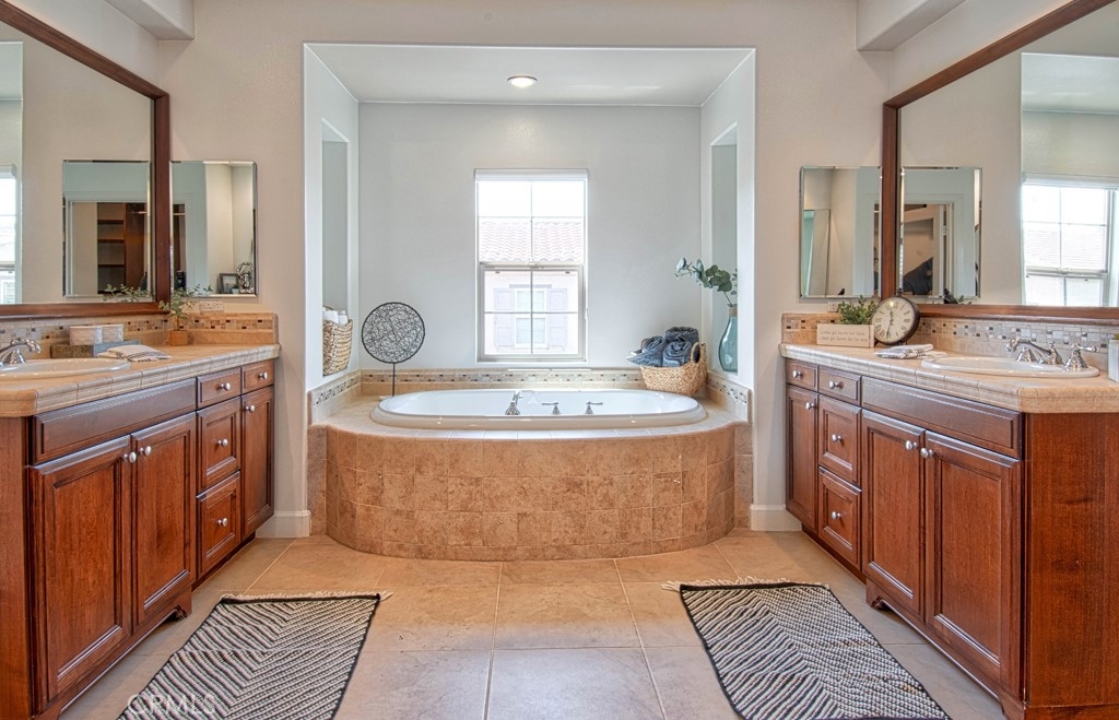 This home looks like a single family detached home and it feels like one too! Enjoy a full driveway, full sidewalks, and no common walls. The spacious courtyard entry is large enough to accommodate a cozy seating area to relax or bistro table to enjoy your morning cup of Joe! The roomy entry welcomes you into the open main floor living space. Enjoy a Chefs kitchen with stone counters, stainless appliances, and a pull up counter on the oversized kitchen island. French doors off the dining room lead you to the rear yard where you have ample space to soak up the California Sunshine! A loft/office space with balcony suited for Rapunzel, separates the 2 secondary bedrooms from the Master Suite. The 2 secondary bedrooms are joined by a Jack n Jill Bath and the Master Suite has it all! ...an extra large walk-in closet with built-in closet organizers, soaking tub, stand-alone shower, separate water closet, built-in chest of drawers, sit-down makeup vanity, and opposing dual vanities with sinks. All of this and the coveted, end of cul-de-sac location!