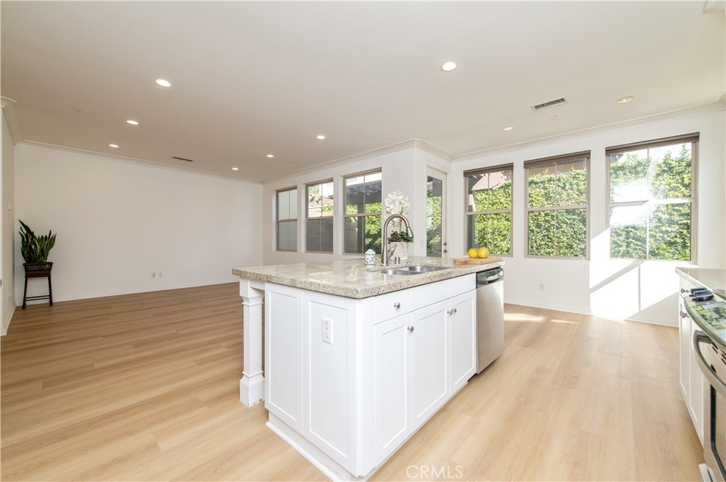Brand all New flooring, this duplex home has Large side yard great for privacy. Open floor plan, best school district and idea location for work life balance, this modern 3 bedroom, 2 and half bath home is conveniently located in the highly desirable community of Stonegate East. Open and bright with abundant natural light. Large spacious great room with a built-in tech desk and open-concept living/dining areas. The gourmet kitchen features a center island and bar seating, upgraded granite countertops, white cabinetry and stainless steel appliances. The generous primary suite offers double vanities, soaking tub, shower and walk-in closet. Two additional bedrooms and upstairs individual laundry room complete the layout. This two story town home feels like a single family home due to only one neighbor in the same building, which allows with a lovely extra large side yard, great backyard. Freshly painted. Brand new wood flooring throughout the entire home. Resort style HOA amenities are just across the street. Bluebird Park, community pool and spa, sport courts, playgrounds, BBQ areas and walking trails. Access to award winning Irvine school district. Close to Woodbury shopping center, Great Park, Jeffrey Open Space Trails, freeways and toll roads.