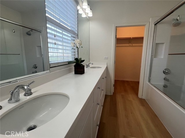 Open floor plan, best school district and idea location for work life balance, this modern 3 bedroom, 2 and half bath home is conveniently located in the highly desirable community of Stonegate East. Open and bright with abundant natural light. Large spacious great room with a built-in tech desk and open-concept living/dining areas. The gourmet kitchen features a center island and bar seating, upgraded granite countertops, white cabinetry and stainless steel appliances. The generous primary suite offers double vanities, soaking tub, shower and walk-in closet. Two additional bedrooms and upstairs individual laundry room complete the layout. This two story townhome feels like a single family home due to only one neighbor in the same building, which allows with a lovely extra large side yard, great backyard. Freshly painted. Brand new wood flooring throughout the entire home. Resort style HOA amenities are just across the street. Bluebird Park, community pool and spa, sport courts, playgrounds, BBQ areas and walking trails. Access to award winning Irvine school district. Close to Woodbury shopping center, Great Park, Venta Spur and Jeffrey Open Space Trails, freeways and toll roads.