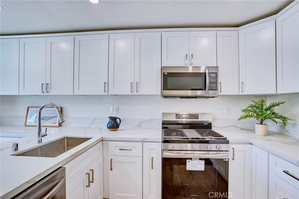 Welcome to 28 Columbia, a beautifully remodeled home in the Columbia Square community, conveniently located near UC Irvine and the highly coveted University High School. Located next to the greenbelt with a beautiful view. This fully renovated two-story townhouse features two spacious bedrooms upstairs with half a bath on the first floor. Step inside to discover a bright and airy living area with all-new luxury vinyl floors. The kitchen includes plenty of brand-new shaker-style cabinetry, quartz countertops, and stainless-steel appliances. A cozy fireplace separates the living and dining rooms, creating distinct spaces for relaxation and entertaining. The homeowner association offers lush landscaping, a swimming pool, a BBQ area, a basketball court, and a playground. Within walking distance to Trader Joe’s and Target. Enjoy Mason Park, Back-Bay Trails, Community Amenities, and much more.