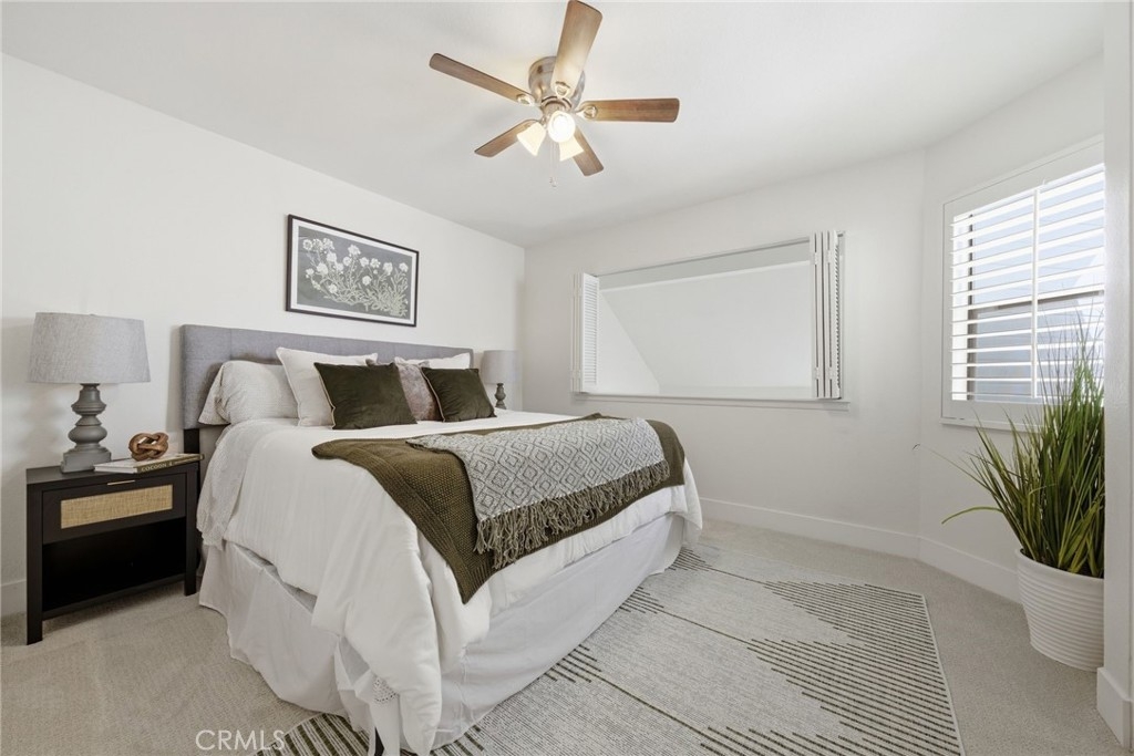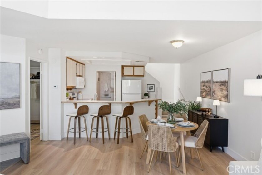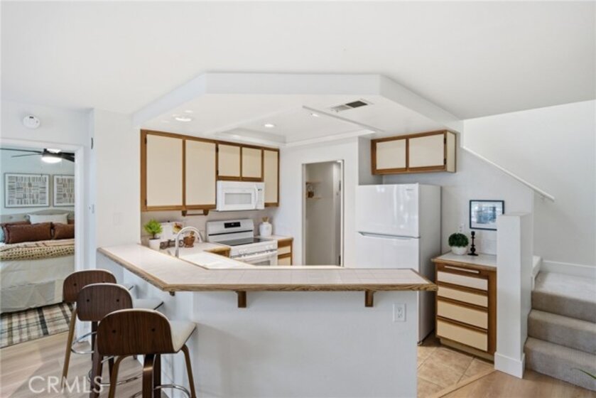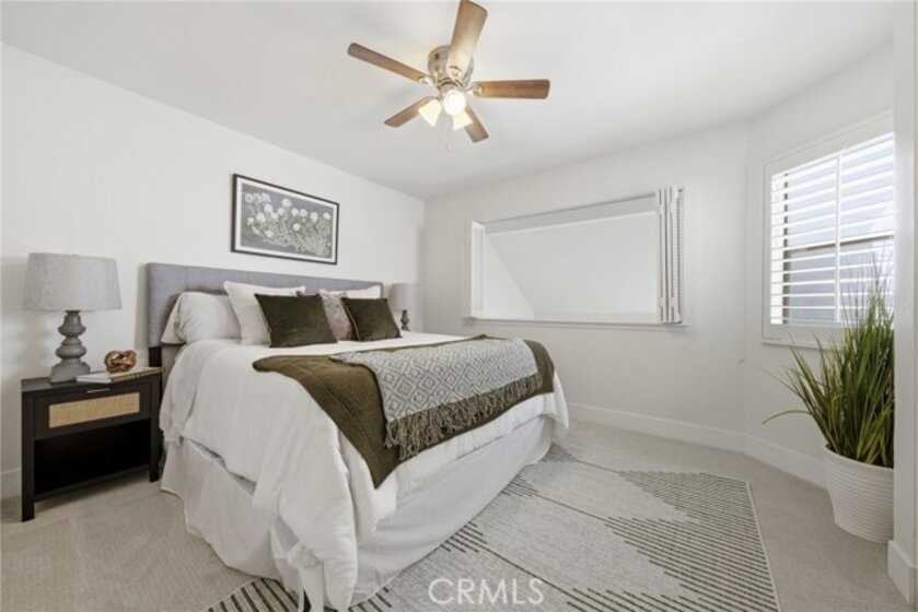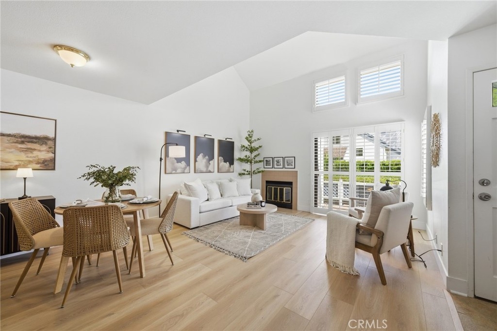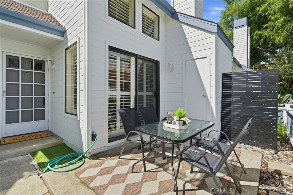 Welcome to 3 Greenmoor, a charming townhome located in the highly desirable Woodbridge community of Irvine. From the moment you enter, you’re greeted by soaring two-story ceilings and an abundance of natural light that fills the living space, creating an open and inviting atmosphere. The living room features a cozy fireplace and is complemented by shutters on the windows and sliding doors, adding both style and privacy. The main level offers brand new luxury vinyl plank flooring and includes a spacious bedroom with an attached bathroom, complete with a tub and shower combination. This room also features a ceiling fan and generous space, making it a comfortable retreat. The kitchen opens to the living area and includes a breakfast bar, along with a dishwasher, range, and refrigerator. Just off the kitchen is a separate walk-in laundry room for added convenience. There is also space for a dining area, making the layout both functional and flexible. Upstairs, you’ll find brand new carpet and a second large bedroom with its own bathroom, also featuring a tub and shower combination, offering privacy and comfort. Step outside to a private enclosed patio, ideal for outdoor dining, relaxing, or enjoying the Southern California weather. The home also includes a one-car detached garage. Located within the Woodbridge community, residents enjoy access to a wide range of amenities, including lakes, pools, parks, and more. This home is also situated within the attendance boundaries of Springbrook Elementary, South Lake Middle School, and Woodbridge High School. A wonderful opportunity to own in one of Irvine’s most sought-after neighborhoods.