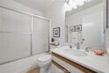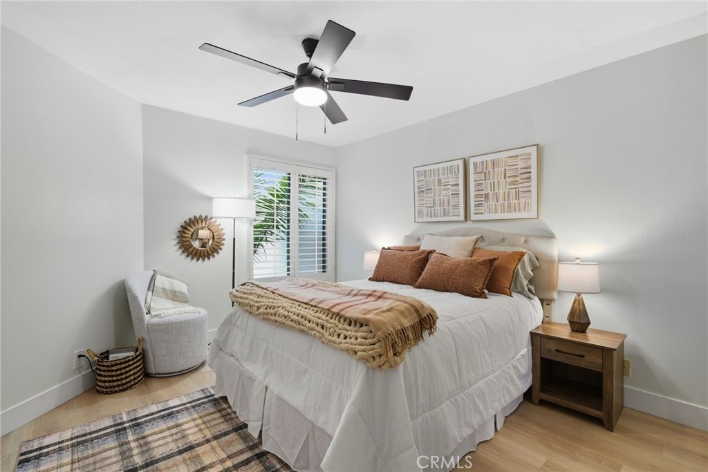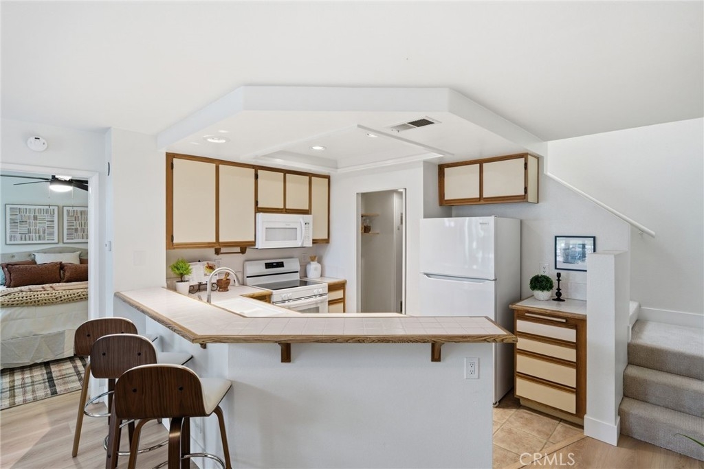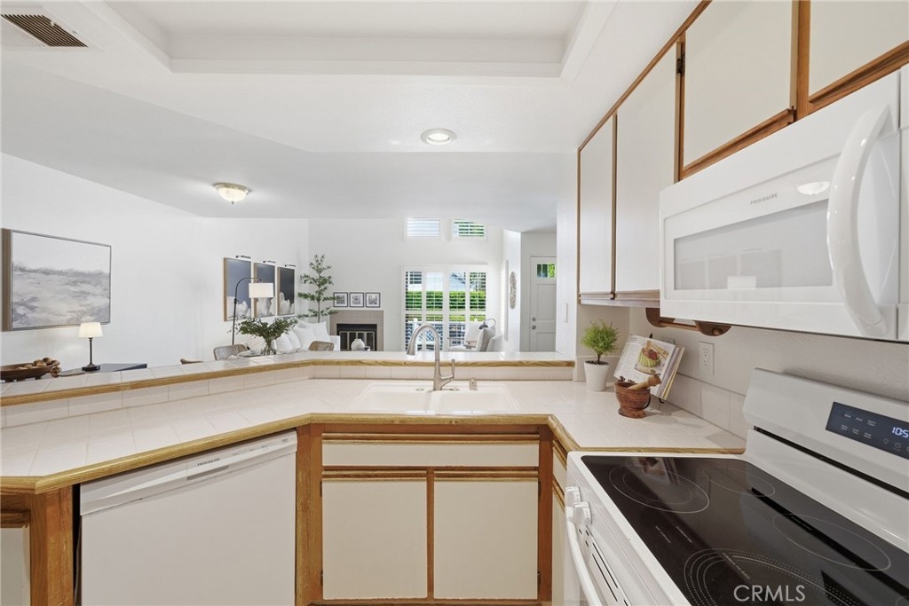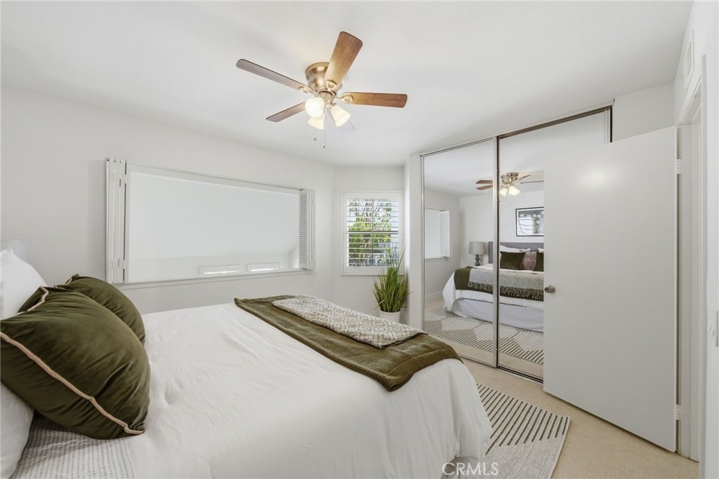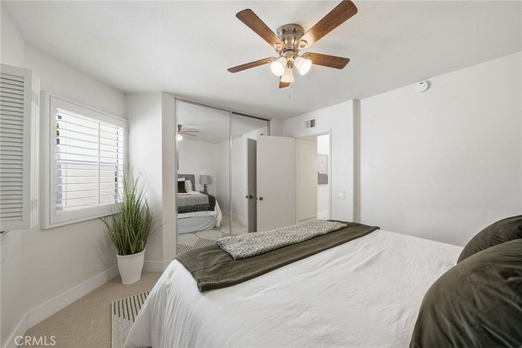 Welcome to 3 Greenmoor, a charming townhome located in the highly desirable Woodbridge community of Irvine. From the moment you enter, you’re greeted by soaring two-story ceilings and an abundance of natural light that fills the living space, creating an open and inviting atmosphere. The living room features a cozy fireplace and is complemented by shutters on the windows and sliding doors, adding both style and privacy. The main level offers brand new luxury vinyl plank flooring and includes a spacious bedroom with an attached bathroom, complete with a tub and shower combination. This room also features a ceiling fan and generous space, making it a comfortable retreat. The kitchen opens to the living area and includes a breakfast bar, along with a dishwasher, range, and refrigerator. Just off the kitchen is a separate walk-in laundry room for added convenience. There is also space for a dining area, making the layout both functional and flexible. Upstairs, you’ll find brand new carpet and a second large bedroom with its own bathroom, also featuring a tub and shower combination, offering privacy and comfort. Step outside to a private enclosed patio, ideal for outdoor dining, relaxing, or enjoying the Southern California weather. The home also includes a one-car detached garage. Located within the Woodbridge community, residents enjoy access to a wide range of amenities, including lakes, pools, parks, and more. This home is also situated within the attendance boundaries of Springbrook Elementary, South Lake Middle School, and Woodbridge High School. A wonderful opportunity to own in one of Irvine’s most sought-after neighborhoods.