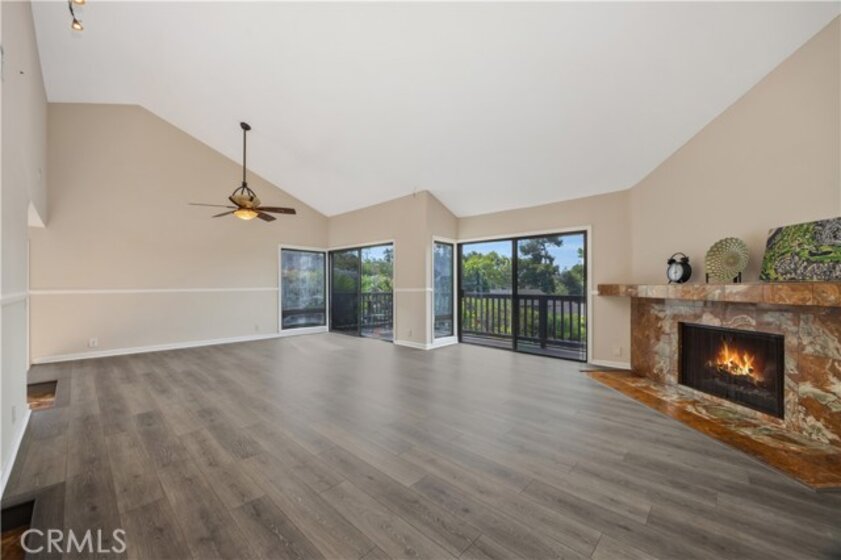 Brand new luxury laminated flooring with price adjustment!! At $1,139,0000, the lowest condo in this fabulous neighborhood of Rancho San Joaquin Interior location, away from the noisy streets! Street level entry with high ceiling! End unit with no one above! South facing with three sets of sliding doors and two balconies! Light and bright with beautiful view! Rarely on the market, this one-of-a-kind single-level home is situated in a beautiful location in the prestigious golf course community of Rancho San Joaquin. Zoned for the number 1 high school in Irvine (University High), the secluded two-bedroom and two-bathroom top-floor condo is an end unit with a street-level entrance. This wonderful home boasts 1468 square feet of living space consisting of an open floor plan that includes a living room with a cathedral ceiling and fireplace, a dining room, and an open kitchen. Enjoy the panoramic view of the neighborhood through the multiple large sliding doors, which also provide access to the oversized private balconies located around the unit. The gourmet kitchen has a granite countertop and is equipped with stainless steel appliances, a double oven, a gas stove top, a microwave, and a water purifier. With an abundant amount of counter and cabinet space, the kitchen provides a beautiful and functional space for even the most demanding chefs. The primary bedroom is very spacious and bright with a cathedral ceiling. The amazing views from the oversized window turn this space into a wonderful personal retreat. The primary bathroom has a large window which brings in an ample amount of natural light creating a comfortable and bright space. This bathroom is outfitted with double vanities and a walk-in shower and contains an abundant amount of closet space. The second bedroom has an ensuite bathroom with a single vanity and a tub and shower combo. Multiple built-in closets throughout the unit provide an ample amount of storage space. In addition, the condo includes a two-car detached garage with a shelving system for additional storage. No Mello Roos! The community has two swimming pools and spas, and is very close to UCI, William Mason Park, and various hiking trails. With countless shopping and dining choices nearby, and only minutes away from South Coast Plaza, Irvine Spectrum, Fashion Island, and the beautiful Southern California beaches, you do not want to miss this one. Come and see it for yourself!