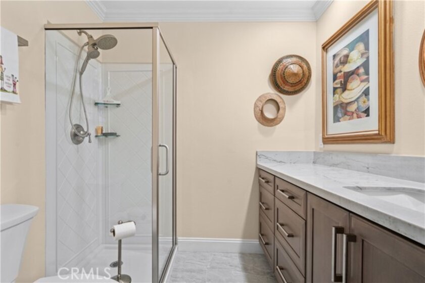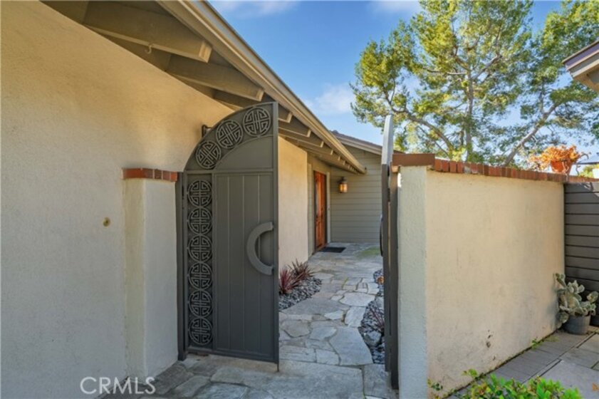 Beautifully remodeled home on a private cul-de-sac, offering panoramic views of the golf course, pond, city skyline, and sunsets, perfectly situated near the 6th and 7th fairways. Through the front gate is a courtyard featuring a fountain and rock waterfall. Inside the front door is an open room, illuminated by a skylight, that flows into the main living spaces, making it ideal for a playroom or guest area. This home has an open floor plan with cathedral ceilings and recessed lighting, enhanced by dual-pane windows that fill the space with natural light. Beautiful hardwood flooring throughout (with tile flooring in kitchen, bathrooms and laundry area). The living room seamlessly connects to the dining area and the gourmet kitchen, complete with Quartzite countertops, custom cabinetry, and another skylight. Sliding glass doors from both the dining room and kitchen lead to separate outdoor decks, perfect for relaxing amid lush greenery. The primary bedroom features a sliding glass door that opens to a back patio with amazing golf course views. It also includes a spacious ensuite bathroom with two vanity areas, each with its own sink and cabinets, a walk-in shower, and a privacy door to the toilet. The second back bedroom offers wide-open golf views and can easily serve as an office. Each bedroom is thoughtfully equipped with a ceiling fan for added comfort. Enjoy the convenience of a finished storage area, accessed through the downstairs front bedroom walk-in closet. The kitchen, main floor bathroom, and primary bathroom were all beautifully remodeled four years ago, while dual-pane windows were installed three years ago. Recent upgrades also include a new roof and tenting completed in early 2023. Other benefits include a direct-access two-car garage, indoor laundry area, and access to two community pools and spas. Association dues cover water, trash, and exterior maintenance. Situated within the acclaimed Irvine School District, including University High, this home is just minutes from UCI, William Mason Park, John Wayne Airport, Newport Beach, and Fashion Island. This remodeled home, with spectacular golf course views, offers a turnkey resort-style living experience!