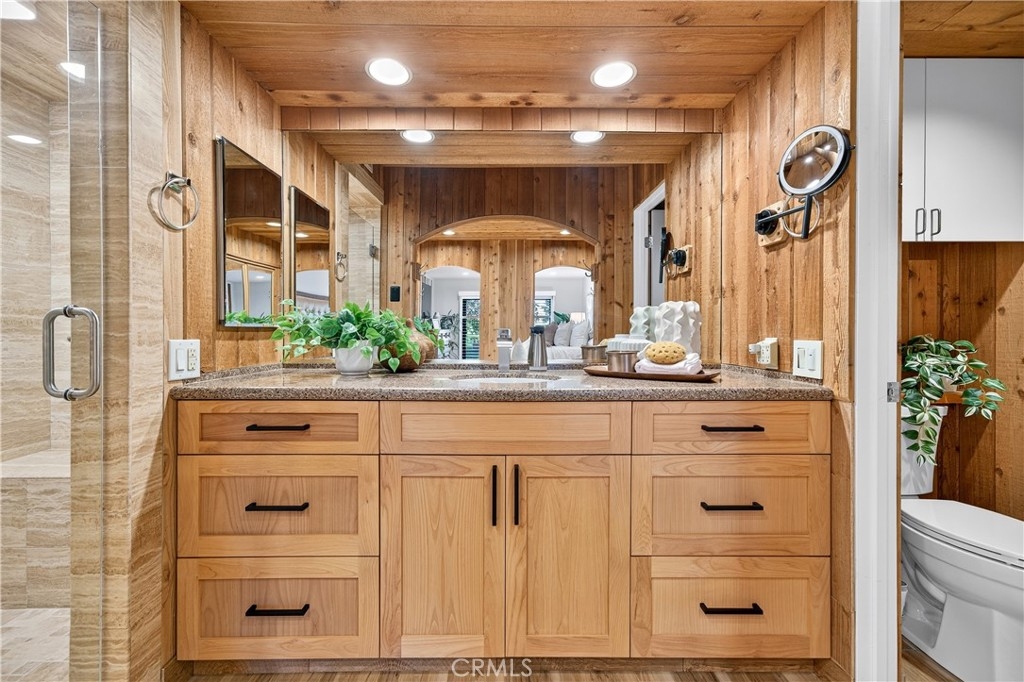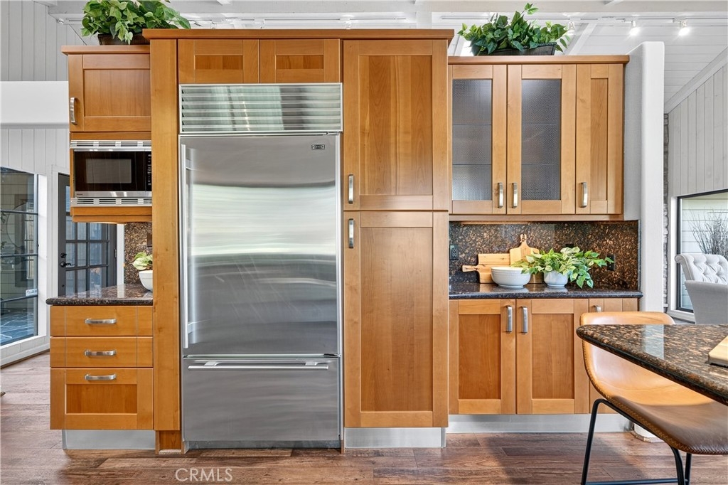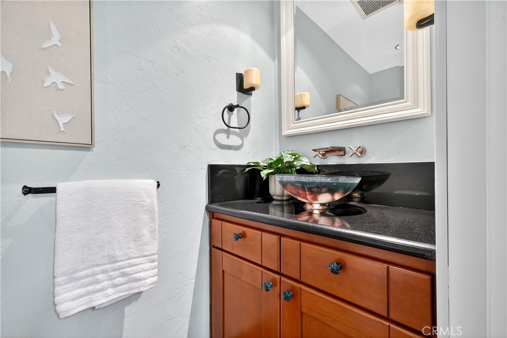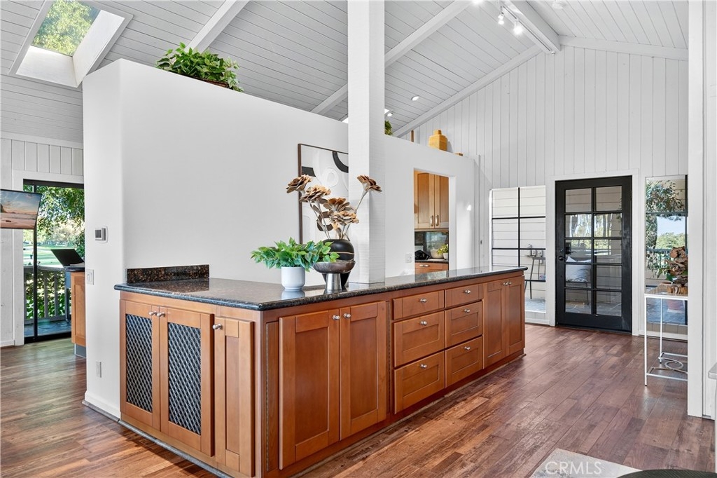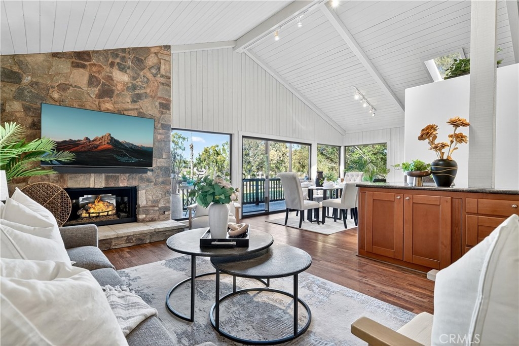 On a premium corner lot at the end of a quiet cul-de-sac, this beautifully remodeled home offers panoramic views of the golf course, ponds, city skyline, and sunsets, including a direct overlook of the 13th-hole tee-box. Step through the front gate into a tranquil, private courtyard with warm lighting, featuring a custom heated spa, a rock waterfall, and a bar-height counter overlooking lush greenery—ideal for entertaining or unwinding. Inside, the open floor plan boasts cathedral ceilings, dual-pane windows, and abundant natural light. The living room opens to the dining area, while the remodeled gourmet kitchen—with top-of-the-line stainless steel appliances, granite counters, custom cabinetry and recessed lighting—flows seamlessly into the dining area. Sliding glass doors in both the dining room and kitchen lead to a wrap-around deck extending around the back and side of the home, perfect for indoor-outdoor living. The primary bedroom features a sliding glass door to the back patio with golf course views. It includes a spacious ensuite bathroom with a vanity area, a separate shower room, and a privacy door to the toilet, along with a cozy sitting area and mirrored closets. All bedrooms and bathrooms have recessed lighting, and each bathroom has been beautifully remodeled. Additional highlights include custom cabinetry around the stairs, a remodeled fireplace, and finished storage areas. Recent upgrades feature a new roof and tenting completed in Summer 2023, with the HOA special assessment fully paid. Conveniences include a direct-access two-car garage and an indoor laundry area. Residents enjoy access to two community pools and spas, with association dues covering water, trash, and exterior maintenance. Ideally located in the esteemed Irvine School District, including University High, and just minutes from UCI, William Mason Park, John Wayne Airport, Newport Beach, and Fashion Island. This home offers refined, move-in-ready living with spectacular golf course views and timeless appeal.