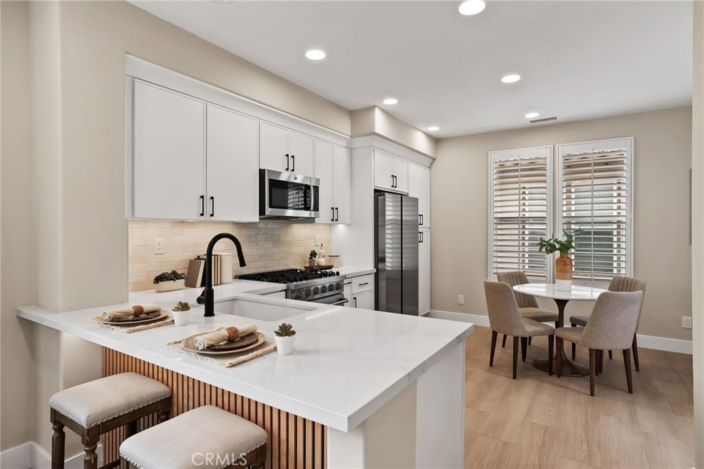 COMPLETELY REMODELED and FULLY DETACHED (no shared walls), this corner-lot Ivy Wreath home is ideally located in the highly sought-after Quail Hill community. The residence has been beautifully refreshed with fresh interior paint and premium luxury vinyl plank flooring throughout. The bright and spacious great room features built-in shelving, creating the perfect space for both everyday living and entertaining. The stunning chef’s kitchen overlooks the dining area and great room and showcases quartz countertops, sleek white cabinetry, and new stainless-steel appliances. Enjoy indoor-outdoor living with a balcony just off the breakfast nook, perfect for morning coffee or evening relaxation. All bedrooms offer the privacy of en-suite bathrooms, plus an additional powder room for guests. Every bathroom has been upgraded with new cabinetry and quartz countertops. The versatile floor plan includes one bedroom on the first level and two bedrooms on the third level, along with a dedicated study nook featuring a built-in desk and shelving, ideal for working from home, studying, or homework time. Additional highlights include inside laundry and a two-car garage with new garage doors and epoxy flooring. A private front patio provides a welcoming outdoor retreat. Enjoy a prime location within walking distance to Alderwood Elementary, community pools, parks, shopping, and restaurants, and just minutes from the Irvine Spectrum Center for premier business, entertainment, and dining.