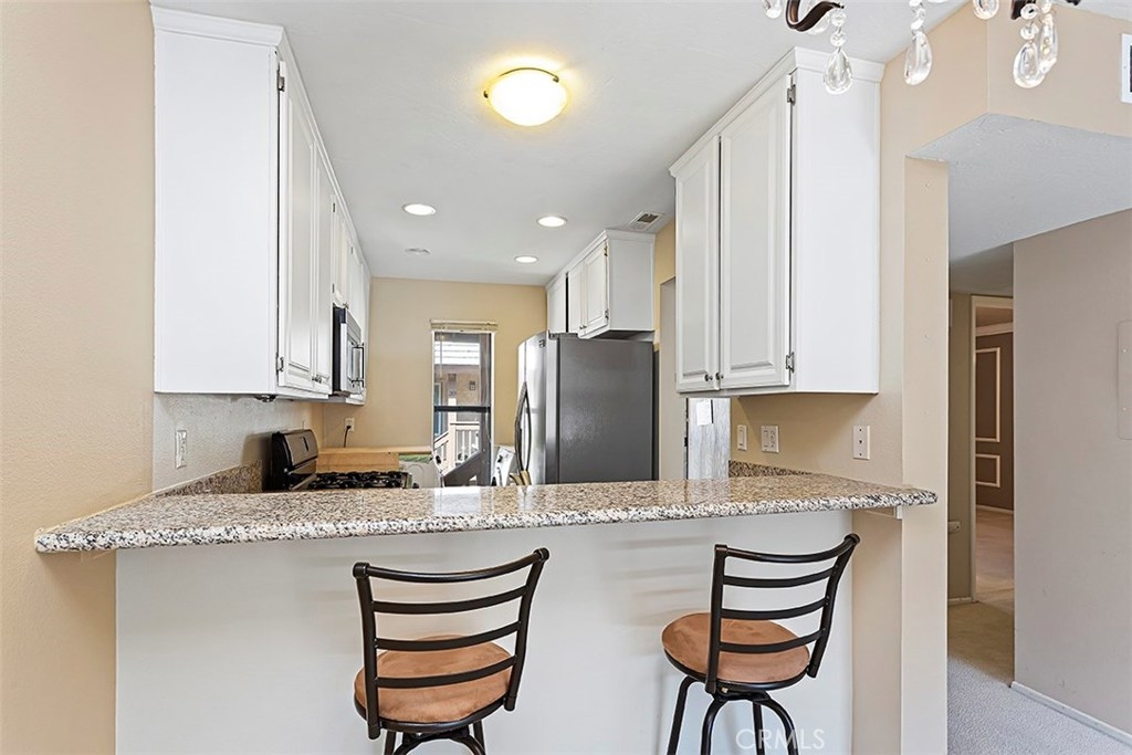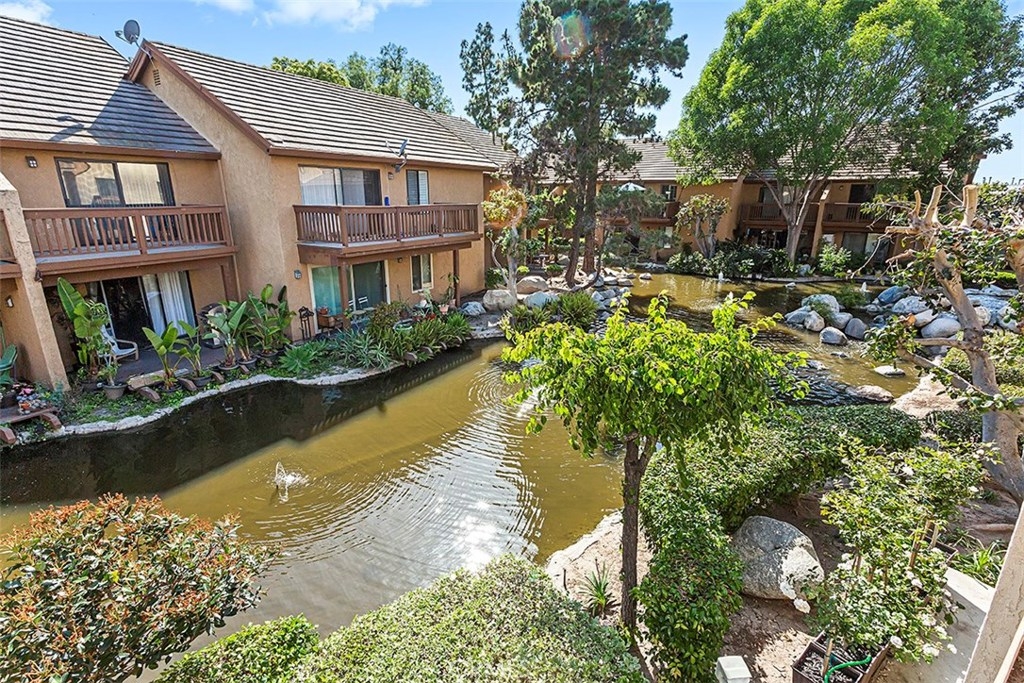 Beautiful Orangetree Condo, Bright Upper Unit. This tastefully appointed home features a large master bedroom with custom wall and crown molding as well as mirrored closet doors and added light sconces. The bathroom has been remodeled with classic wainscoting, resurfaced tub/shower, new ceramic tile flooring, custom vanity with granite top. Kitchen features stainless steel appliances including a built in microwave, granite counters and is open to the dining area and great room. Super spacious living area with cathedral ceiling, recessed lighting and upgraded T V electrical and wall mount. The stairs have been remodeled with custom woodwork, open spindles and hardwood steps. The hardwood floors flow into the second bedroom which also has a mirrored closet door with extra storage space, large baseboards, ceiling fan and recessed lighting. Private patio overlooks the community streams and waterfalls. All of this is located in a community highlighted by Two Pool and spa areas, Clubhouse with Pool Table, Fitness Center, Several Tennis Courts, BBQ areas and a Tot Lot.