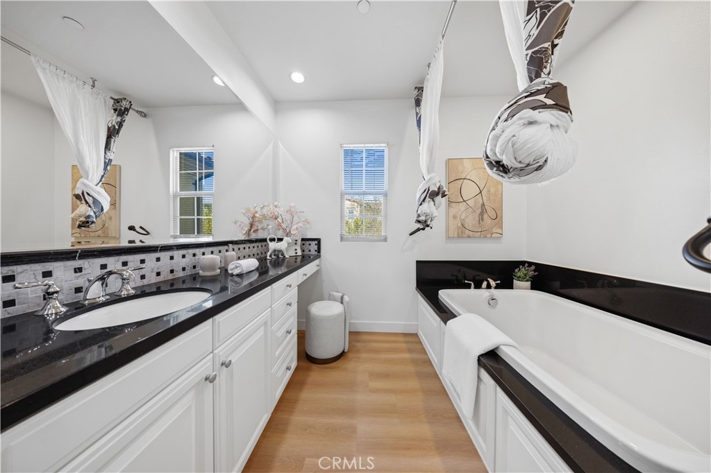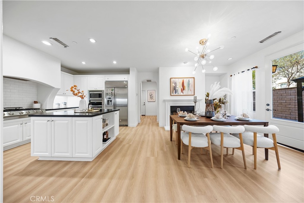 Welcome this Gorgeous and warming Home! Located in the prestigious community of Paloma in Portola Springs, we are proud to offer 31 Arrowhead Irvine built by Brookfield Homes. Turnkey and model perfect this home is situated on a premium lot and offers 4 beds 4 1/2 baths with an open floor plan that covers 2655 sq. ft. of expansive living. Paid Solar System. A downstairs bedroom suite is a key feature for in-laws or special guests. Quality upgrades include fresh paint, brand new modern wood Vinyl flooring, plantation shutters throughout, and a cozy gas fireplace. The Chef's kitchen is a centerpiece of the home boasting a massive granite island, lighted granite counter tops, high end white cabinetry, Electrolux 6-burner SS range and oven, stainless dishwasher and microwave. Upstairs, the master retreat is an equal centerpiece of the home featuring marble flooring and counters, huge double entry walk-in closet, soaking tub, separate glass enclosed shower, dual master vanities, high end Kohler fixtures, alcove utility space, and a balcony with a view off the master bedroom. Two additional bedrooms with en-suite bathroom with windows and a laundry room with a sink round out the second floor living space. The tranquil patio yard adds a serene outdoor area to relax. This home is conveniently across from the community park and nearby shopping/entertainment, featuring a resort-style pool, clubhouse, and sport facilities. Located within the award winning Irvine Unified School District. Must See.