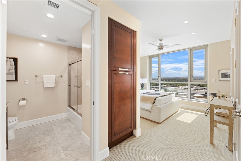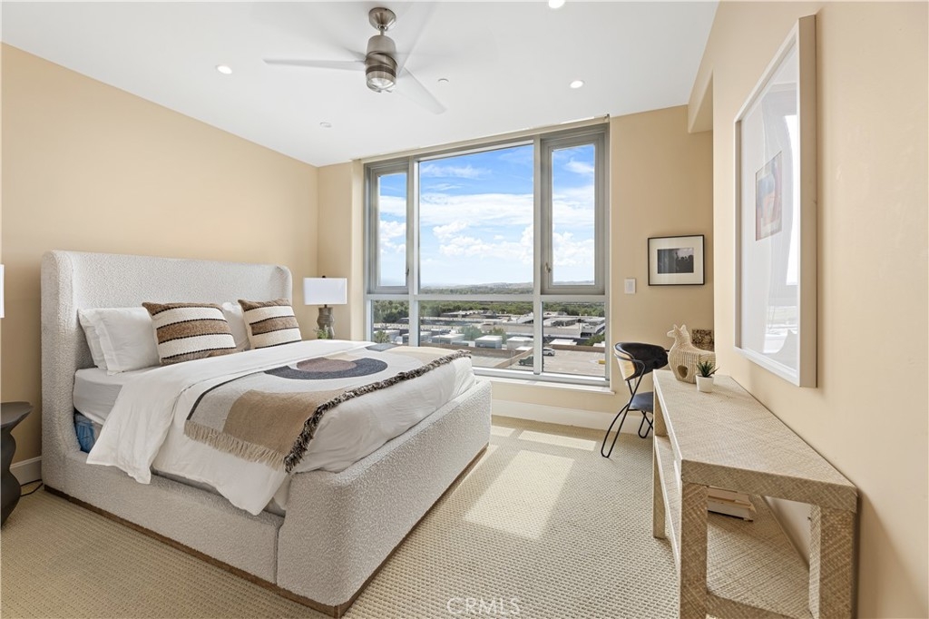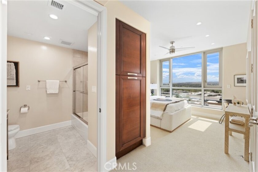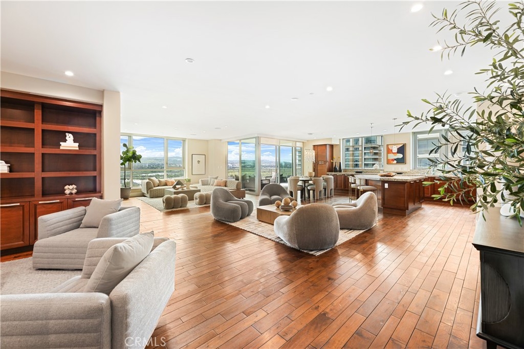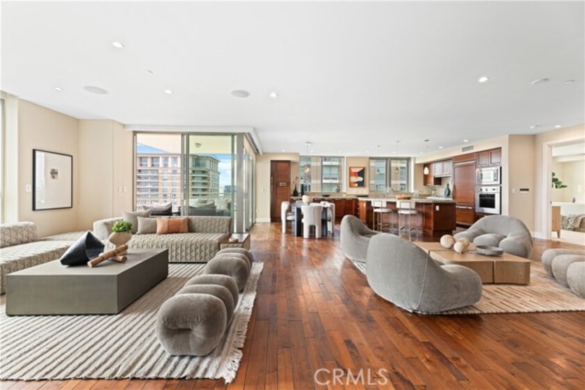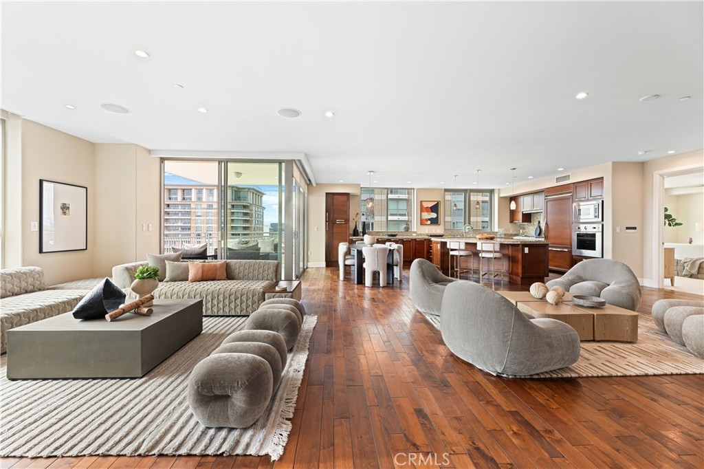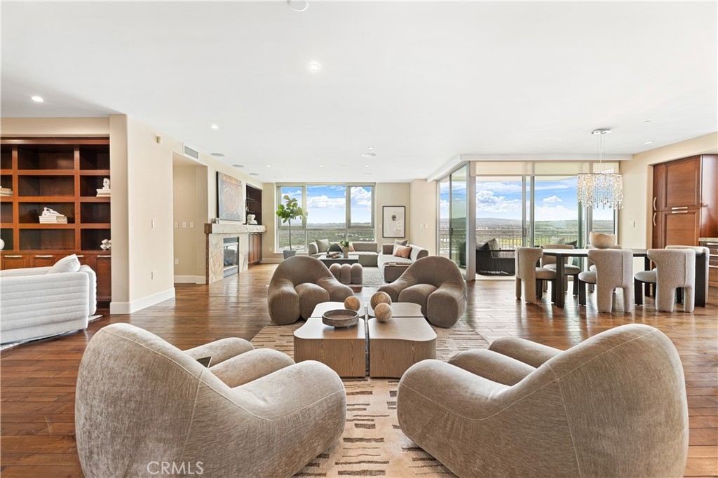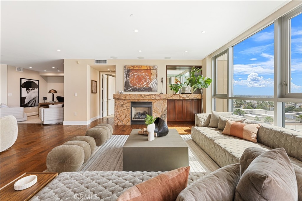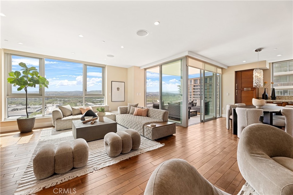 Perched on the 10th floor of the prestigious 3000 Plaza building, this sophisticated two-bedroom, two-and-a-half-bath corner residence offers a rare high-altitude lifestyle in Irvine’s most desirable high-rise community. The expansive, open-concept floor plan is defined by rich hardwood floors and an airy layout flooded with natural light through expansive windows and a sliding glass door leading to the private terrace. A chef-inspired kitchen featuring high-end appliances flows seamlessly into a massive great room, perfect for entertaining or quiet relaxation against a panoramic backdrop of unobstructed, forever views. This unique corner position ensures additional privacy and enhanced vistas compared to standard units. Step out onto the balcony to experience an exclusive vantage point situated near the building's celebrated rooftop pool. Beyond the home's interior, which includes a rare private storage unit, residents enjoy a true luxury "lock-and-go" experience with monthly HOA fees that conveniently include water, trash, cable TV, and high-speed internet. World-class amenities provide an elite sanctuary, including 24-hour concierge and security, a state-of-the-art fitness center, a third-floor spa, and a resort-style rooftop pool with fire pits and a club room, all located in close proximity to top-tier dining and local cafes.