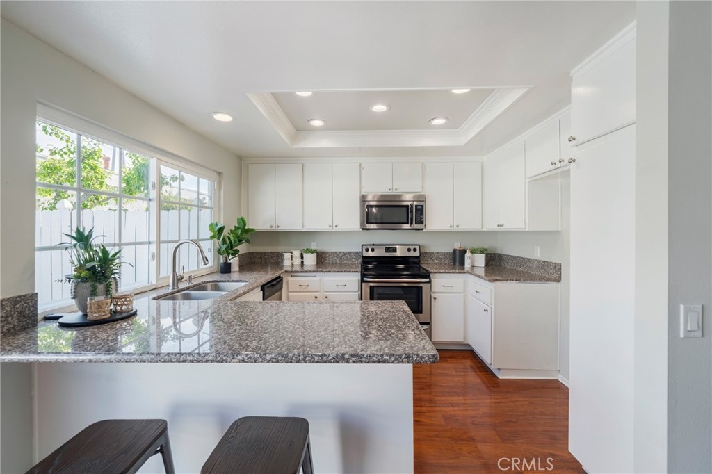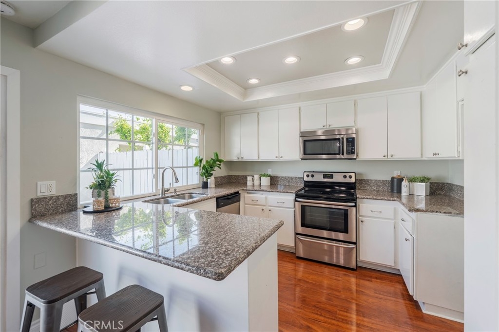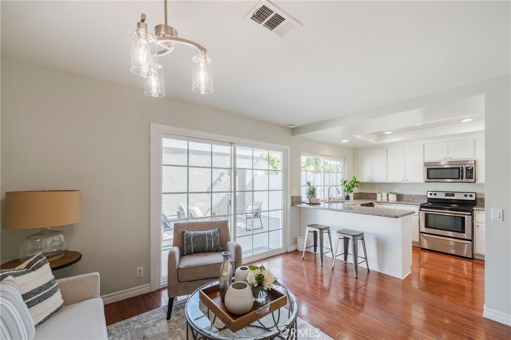 Welcome to this beautiful, refined two-story townhome in the desirable area of Deerfield in Irvine. It offers 3 bedrooms & 3 bathrooms in approximately 1,550 sf of thoughtfully designed living space, blending comfort, style, and convenience. Step inside to a light-filled interior with soaring vaulted ceilings that create an open and airy atmosphere. The elegant living room features classic plantation shutters and a cozy fireplace, offering the perfect setting for relaxing evenings or intimate gatherings. Fresh interior paint, wood-style flooring, new light fixtures and dual-pane windows enhance the home’s warm and polished aesthetic. The well-appointed kitchen is designed for both everyday living and entertaining, featuring granite countertops, abundant cabinetry, a new refrigerator and a charming breakfast nook where morning light pours in. Just beyond, a private patio retreat provides an ideal space for outdoor dining, gardening, or simply enjoying the California sunshine. The patio conveniently connects the home to the detached two-car garage with laundry hookups. Upstairs, the home offers an ensuite master bedroom with a fully renovated 3/4 bathroom. Two additional guest bedrooms share a full bathroom & boast amazing views of the Santa Ana Mountains Situated within the picturesque Fawn Glen community in the Deerfield neighborhood, residents enjoy a serene environment surrounded by mature landscaping, shaded walking paths, and exceptional amenities including five swimming pools, tennis courts, playgrounds, and access to a before-and-after-school service center. The home is served by the award-winning Irvine Unified School District, consistently ranked among the top school systems in California. There is easy access to the 5 and 405 freeways, great shopping at the Irvine Spectrum and South Coast Plaza as well as short drives to many museums in including the UCI Langston Institute and the Museum of California. Most importantly, this home presents an inviting opportunity to enjoy the best of Southern California living! Don’t miss this exceptional opportunity, schedule your showing today!