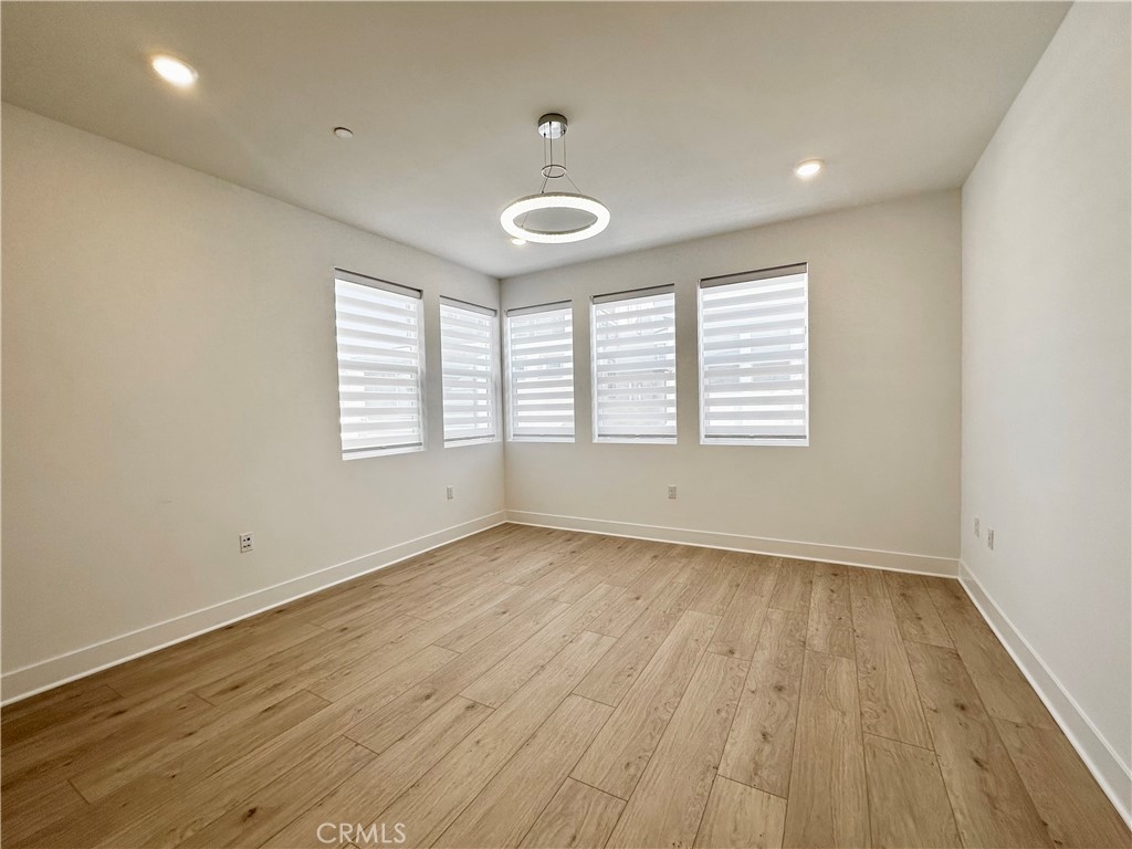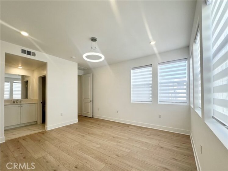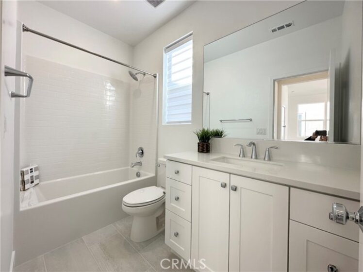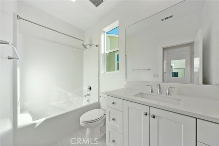 This beautiful brand-new and maintained detached home offers 4 bedrooms and 3.5 bathrooms with 2,132 square feet of living space. The property sits in a quiet interior location of Irvine, not in the T section and not near major streets. A wide and extended front courtyard provides a welcoming entrance, and the classic 2+1 layout creates clear separation between living areas and private spaces. The interior includes approximately forty thousand dollars in designer upgrades. Flooring and tile were upgraded throughout the home, and six modern LED pendant lights were added to enhance the clean and contemporary style. The first floor features bright and open living and dining areas. The kitchen includes an Italian glass tile backsplash along with GE dishwasher and refrigerator. The second floor includes a bright primary suite with a crystal LED pendant light, dual vanities, a large walk-in shower, and a spacious walk-in closet with a window. The closet has upgraded double-sided mirrored doors. Two additional secondary bedrooms are also located on this level, along with a laundry room equipped with newly purchased washer and dryer. The third floor provides a spacious fourth bedroom, a full bathroom and a bright loft with multiple windows. The loft works well as a study, entertainment area, additional family room or an optional fifth guest space. A large view deck offers comfortable outdoor space suitable for seating, BBQ gatherings or relaxation. The garage is equipped with a Tesla battery system and an RV charging outlet, offering added convenience and energy efficiency. Residents have access to Luna Park and all eight Great Park community amenities, including pools, clubhouses, playgrounds and sports facilities. The location is convenient with a three-minute drive to Wild Rivers, a seven-minute drive to the Orange Balloon at Great Park and about ten minutes to Irvine Station and Irvine Spectrum. This home is in excellent condition, well located and easy to show.