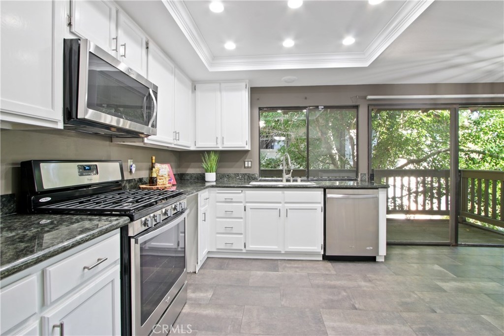 BACK ON MARKET buyer didn?t perform. Their loss your gain! Largest floorplan in highly desirable Rancho San Joaquin community. Enter through a spacious gated courtyard to your own private oasis nestled in the trees with views of trees and greenbelt from every room and multiple balconies to enjoy the outdoors. Beautifully upgraded throughout with modern finishes. Wood burning fireplace and vaulted ceilings in the living room. Eat in kitchen with gorgeous granite counters. Separate formal dining area. Large master bedroom with his and hers closets and beautiful step in shower with rain shower fixture. Secondary bedrooms are spacious one has a walk in closet as well as an additional storage space. Separate laundry area. Oversized DIRECT ACCESS two car garage and coveted driveway for additional parking. Close to UCI and University High School as well as John Wayne Airport. Easy access to freeways and shopping. Association fees INCLUDE water and trash!!!
