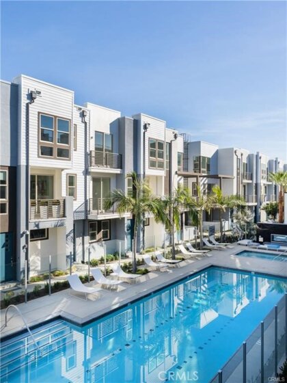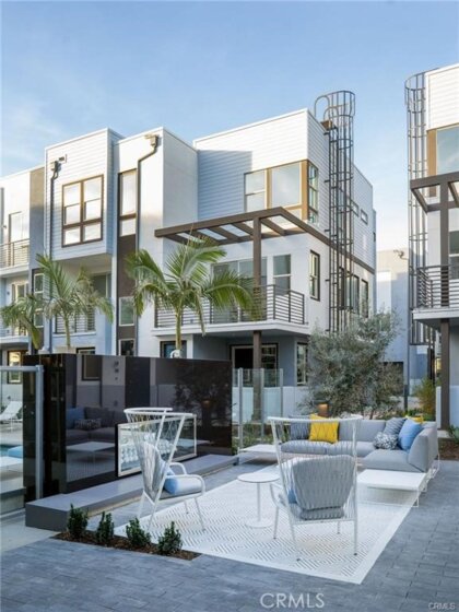 WELCOME TO THE GATED COMMUNITY OF MODERN DESIGNED LIVING (MDL). Step inside and immediately notice the open and airy living spaces, highlighted by a multitude of large windows for exceptional natural light. With contemporary style and luxurious finish quality, the entire home has been thoughtfully considered. The entry level offers an open flex space with a built-in desk and shelving, perfect for a home office or can be comfortably used as an extra bedroom. The perfect open-concept second floor features plenty of modern touches such as recessed lighting, vinyl wood flooring and a chef-inspired kitchen that overlooks the living area and private balcony, ideal when entertaining guests. The kitchen features a beautiful island, sleek countertops, professional-grade stainless steel appliances, and an abundance of modern cabinetry. The third floor has a well-appointed primary bedroom, bathroom, and walk-in closet, a washer and dryer conveniently tucked away in a separate closet and the 2nd bedroom and full bathroom. Enjoy a central courtyard with a resort-style pool, spa, cabanas, outdoor fireplace, seating areas, BBQs dining terrace, clubhouse, and more. Conveniently located near many restaurants, markets, shopping centers, and retail such as Diamond/Jamboree, Fashion Island Newport Beach, South Coast Plaza, UC, Irvine, John Wayne Airport, and easy access to the 405 and 55 freeways.
