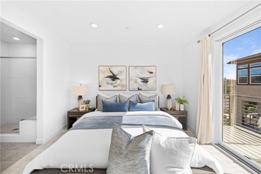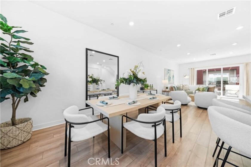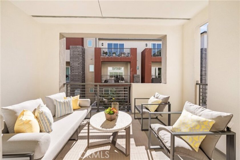 Discover this beautifully designed three-story townhome in Irvine’s coveted Great Park Neighborhoods, offering 3 bedrooms, 3.5 bathrooms, and over 2,000 square feet of bright, contemporary living space—enhanced by a fully paid-off solar system for energy efficiency and long-term savings. The entry level features a private bedroom with its own full bath, perfect for guests or a quiet home office. The main level showcases an open-concept layout where the gourmet kitchen, dining area and spacious living room connect seamlessly, enhanced by abundant natural light and a covered deck ideal for relaxed indoor-outdoor living. Upstairs, the luxurious primary suite provides a serene retreat with its own private balcony, accompanied by another well-appointed bedroom and bath. An attached two-car garage adds everyday convenience. Residents enjoy access to top-rated Irvine schools, including Solis Park K-8 and Portola High—both widely recognized for exceptional academic performance—along with nearby parks, trails, shopping and dining. This home blends modern elegance with comfort in one of Irvine’s most desirable communities.