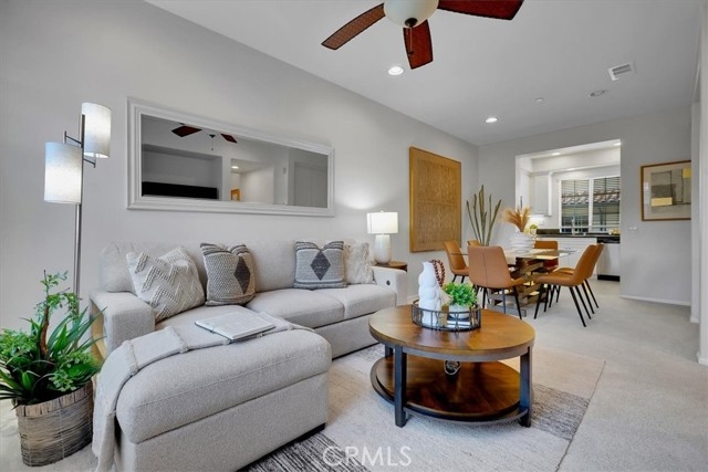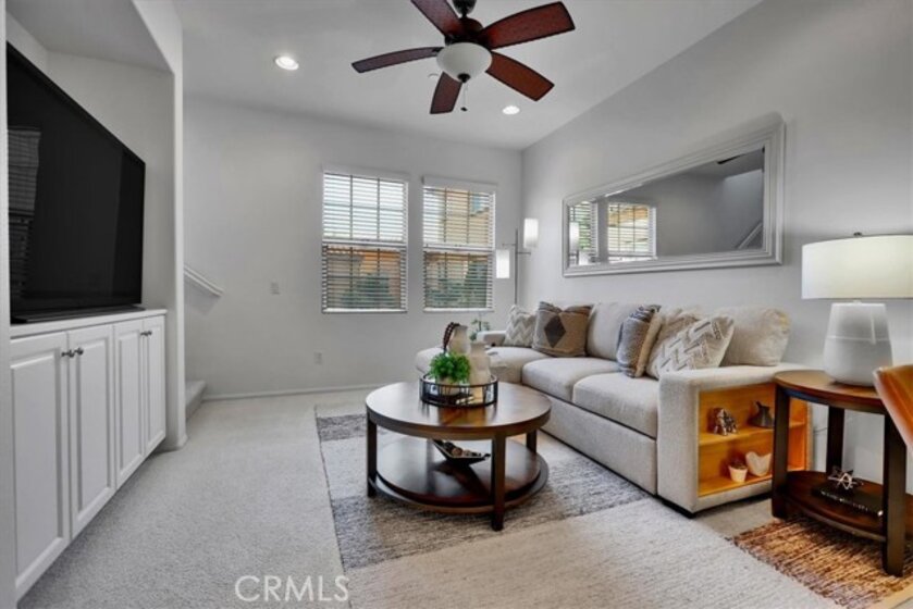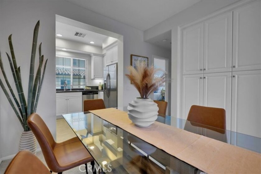 35 Silverado offers bright and inviting living in Irvine’s desirable Portola Springs community. This home provides the convenience of no one above or below and direct access to a spacious side-by-side garage. The entry level features a dedicated laundry room, while the main level opens to high ceilings, abundant natural light, and a seamless flow between the living and dining areas. The modern kitchen includes white cabinetry and stainless-steel appliances. A versatile second bedroom and full bath on this level offer flexibility for guests, work, or additional living space. The top floor is dedicated to the private primary suite, complete with a walk-in closet. Interior upgrades throughout the home include neutral carpet, LVP flooring, custom baseboards, and new recessed lighting for a fresh, cohesive finish. Ideally located next to the year-round heated Jr. Olympic pool and spa, the home also enjoys access to Portola Springs’ exceptional amenities—multiple parks, resort-style pools, sports courts, and community centers. Residents benefit from the highly rated Irvine Unified School District, with Portola Springs Elementary and Portola High School conveniently nearby.