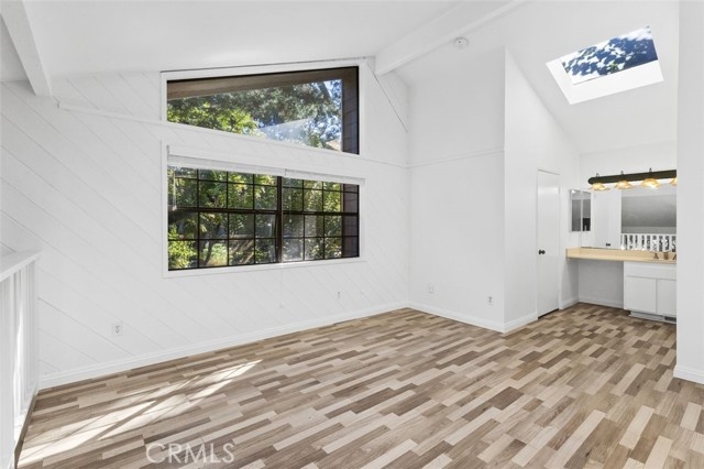 BRIGHT, CORNER-LOT TOWNHOME WITH NO ONE ABOVE OR BELOW – Premium end-unit with stunning lake views and a desirable open layout. Tucked into the tranquil, tree-lined community of The Lakes, this corner-lot home shares only one wall and enjoys no one above or below. Step inside to find a freshly painted interior filled with natural light, vaulted ceilings, and a flexible open layout that lives much larger than expected. The spacious living room features wood laminate flooring, dramatic vaulted ceilings, and a stylish Swedish fireplace perfect for cozy evenings. Enjoy peaceful mornings on your rear patio with no rear neighbors, just serene views of the lake, waterfalls, and lush landscaping. Upstairs, the entire level is dedicated to the lofted bedroom suite with vaulted ceilings, walk-in closet, and bathroom with dressing area, skylight, and elevated lake views. Downstairs includes a dedicated laundry room off the patio, ceiling fan in the dining area, and a thoughtfully updated HVAC system and new water heater. The kitchen is appointed with a stainless steel stove, dishwasher, double sink, and plenty of storage. This rare offering is moments away from one of the two community pools and surrounded by beautifully landscaped walkways, footbridges, koi ponds, ducks, snowy egrets, and blue heron. HOA dues include water, trash, two pools, spas, tennis courts, and serene nature throughout. Conveniently located near shopping, restaurants, Starbucks, freeways, and Hicks Canyon and Jeffrey Trails. No Mello-Roos and a low tax rate. This is one of the best settings in the neighborhood. You are going to love living here!