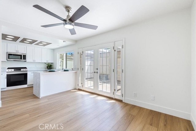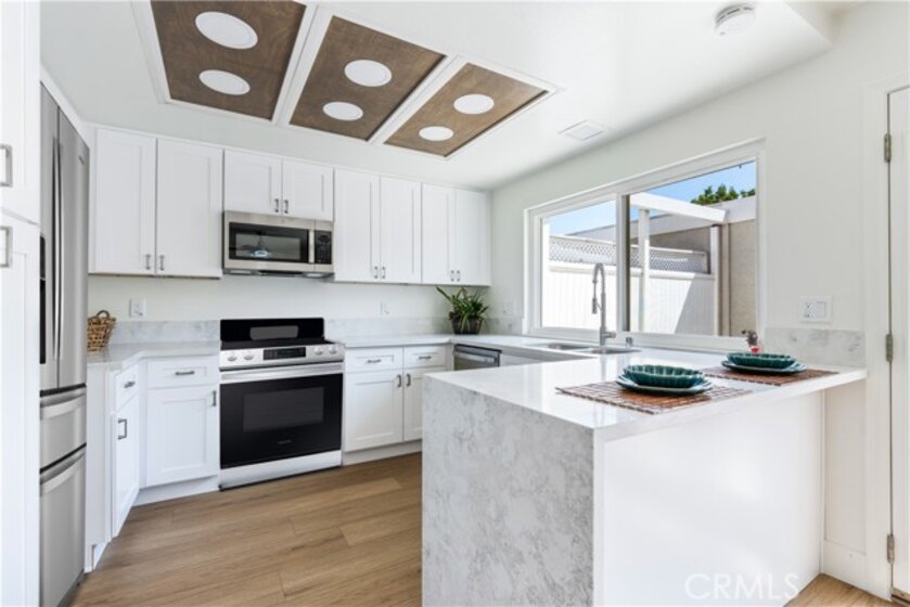 Meticulously upgraded home, offering 3 bedrooms and 2.5 baths in the highly sought after Deerfield Neighborhood. Every detail has been thoughtfully crafted, from new High-End Laminate Flooring to custom Kitchen Cabinetry with new Appliances, new Carpet, new Ceiling Fans, Chandeliers and Light Switches throughout, new Toilets, Vanities and new Bathroom Fixtures in each bathroom, new Door Fixtures, fresh Paint, and new Epoxy garage floors. Home is bathed in natural light, thanks to high ceilings that create a bright and airy ambiance. The living room is centered around a welcoming fireplace and just beyond, a separate dining area, adorned with a new Chandelier, perfect for family gatherings. The kitchen is a true delight, featuring a trey ceiling, new white custom Cabinets, and elegant Quartz countertops. Enjoy preparing meals while overlooking the private patio, with the added convenience of direct access to the oversized two-car garage with new Epoxy floors and plenty of storage. Upstairs the primary suite features an expansive wall-to-wall closet and an en suite bathroom complete with a custom vanity, new fixtures, and updated shower. Across the hall are two equally bright and inviting bedrooms with a shared bathroom complete with new vanity and fixtures. Quiet premium unit is centrally located near everything you need—Parks, Restaurants, Supermarkets, and Shopping. Located within the award-winning Irvine School District, it's just a short walk to Deerfield Elementary School. Enjoy easy access to the 5 and 405 freeways, the Airport, World-Class Shopping Centers, iconic OC Beaches, and top-tier Parks, Entertainment and Sports venues.