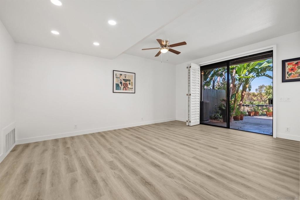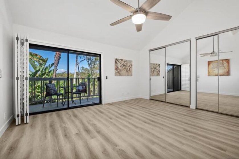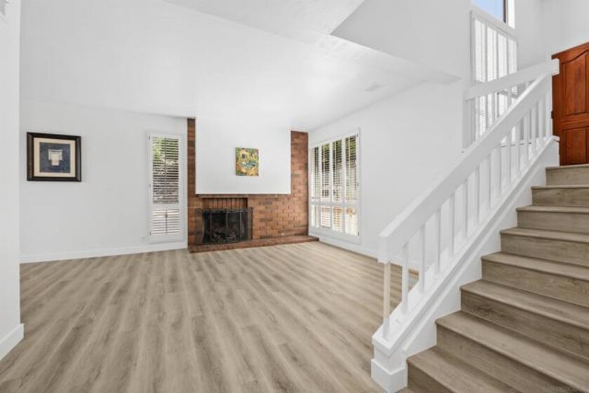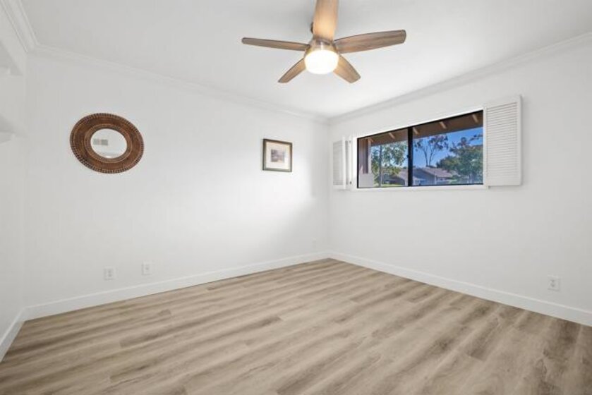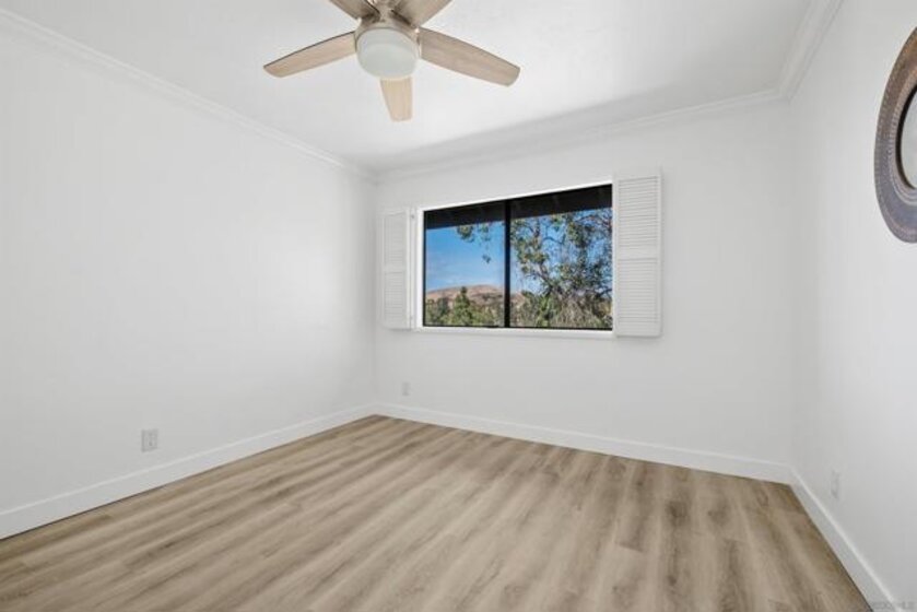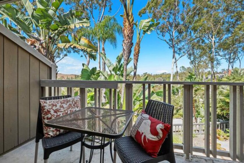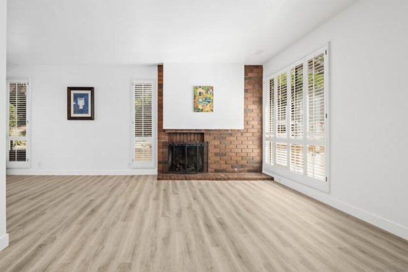 Bright and quiet tri-level unit with great views of rolling hills and green belt. Freshly painted with all new vinyl flooring, kitchen cabinets with stainless steel appliances, granite counters and a bright, spacious living room with fireplace. Spacious master bedroom with oversize new shower, mirrored closet door and a balcony with beautiful views. Great yard with built-in bench around a mature tree perfect for entertaining. Library/den with book shelves and next to a full bath may be used as a 4th bedroom. Located in master community of Turtle Rock Glen with access to Community pool, spa and tennis courts and walking trails.