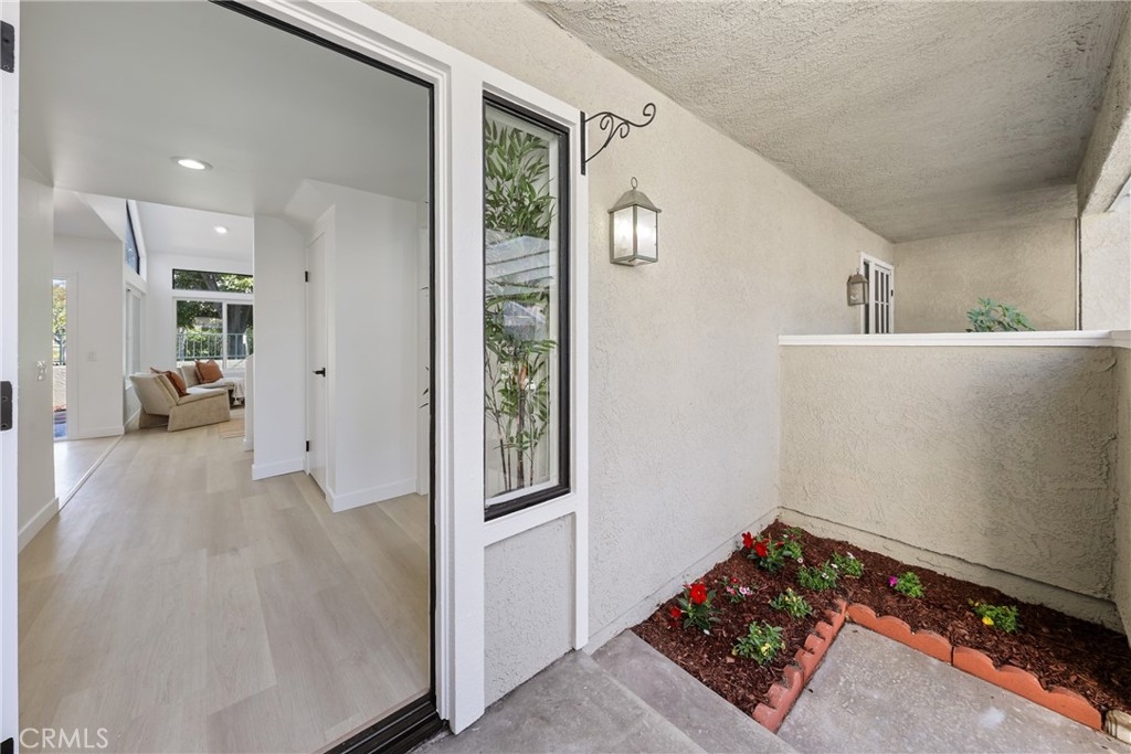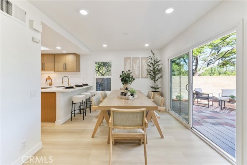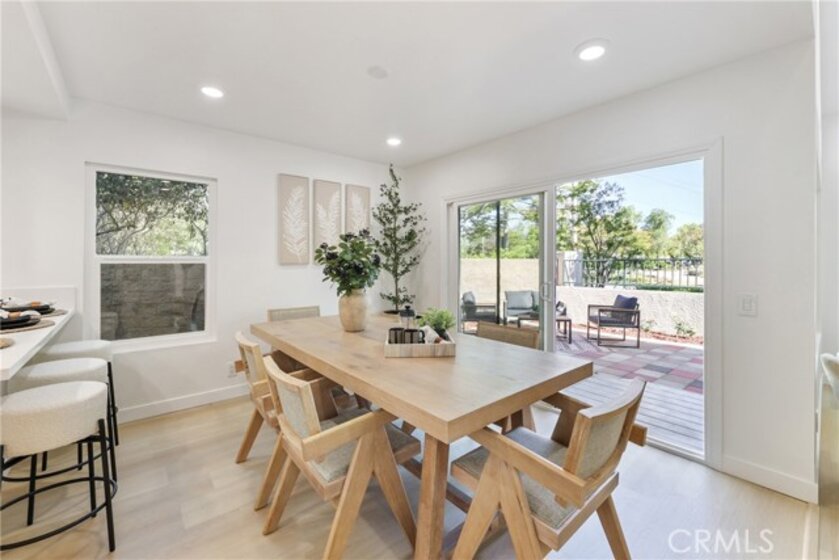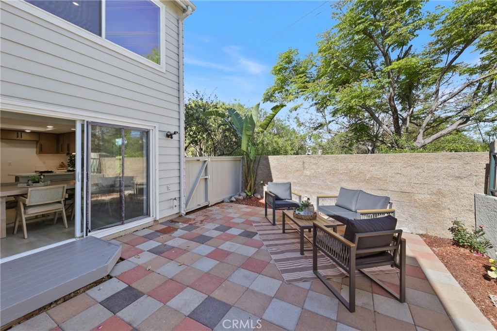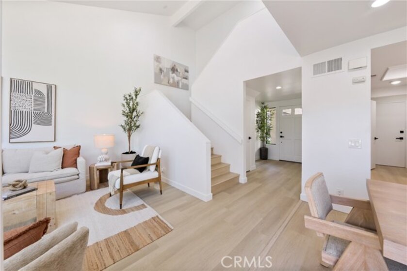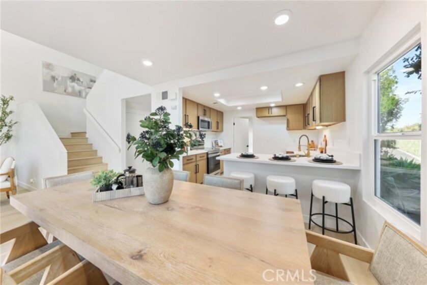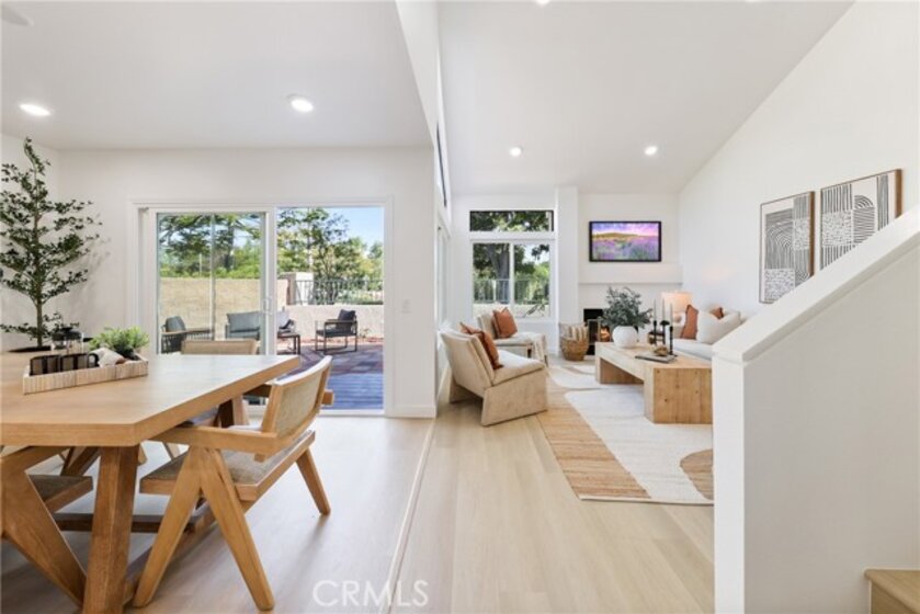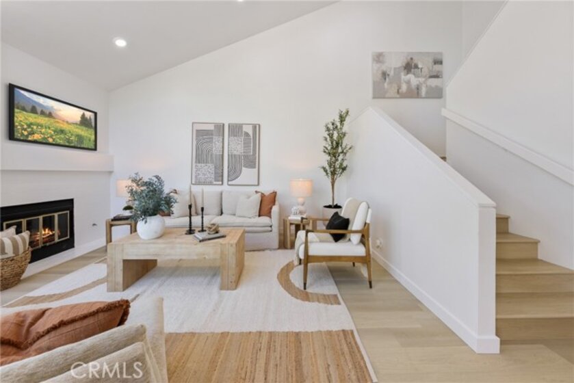 Modern Luxury Meets Privacy in the Heart of Irvine. Experience the pinnacle of turn-key living in this rare end-unit townhome, where contemporary design meets unparalleled privacy. With no neighbors above or below and only one shared wall, this residence offers the feel of a detached home. Architectural Sophistication. Step into a light-filled sanctuary defined by soaring double-height ceilings and expansive windows that frame serene views of the surrounding greenery. The open-concept living area features wide-plank flooring and recessed LED lighting, anchored by a sleek fireplace and a dramatic architectural staircase. Gourmet Kitchen & Dining. The reimagined kitchen is a study in modern minimalism, featuring: * Custom White Oak Cabinetry with matte black hardware. * Pristine Quartz Countertops and a contemporary gooseneck faucet. * A seamless transition to the dining area, perfectly positioned for both intimate meals and larger gatherings. Spa-Inspired Retreats. The bathrooms have been elevated to five-star standards, boasting: * A European-style floating oak vanity and a back-lit LED mirror. * A custom shower-over-tub with a frameless glass shower door. * High-contrast matte black and gold accents set against designer tile. The Ultimate Outdoor Oasis. Rare for the area, the spacious private backyard is a true extension of the home. Relax on the designer-paver patio surrounded by lush landscaping and blooming roses—the perfect backdrop for al fresco dining or evening cocktails under the Irvine sky. Prime Location & Amenities. Enjoy direct access to your one-car garage and an adjacent carport. As part of this sought-after community, you are steps away from resort-style amenities, including a sparkling pool, spa, and tennis courts. Ideally located minutes from top-rated schools, Flagstone Park, and world-class dining, this home is truly move-in ready.