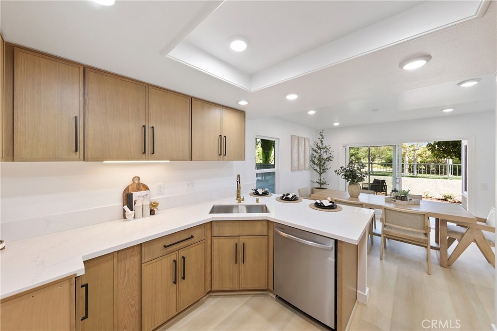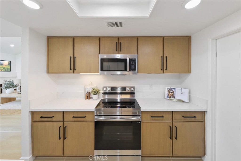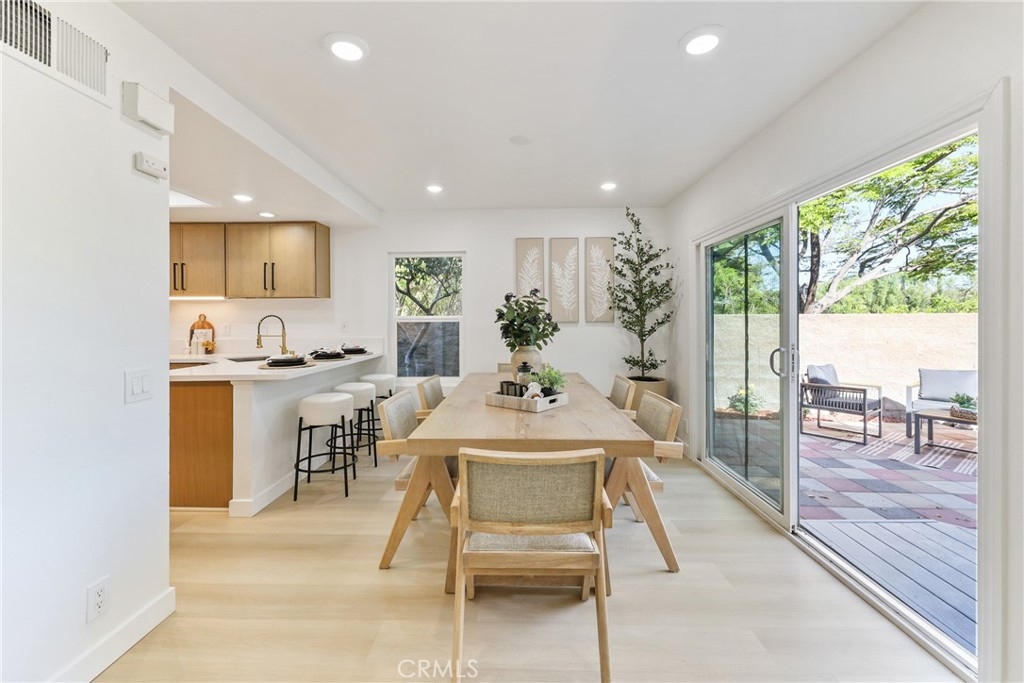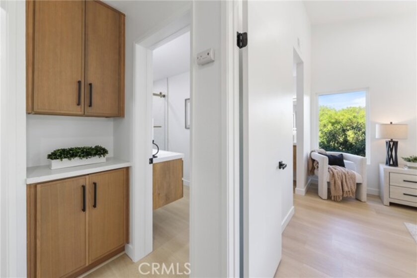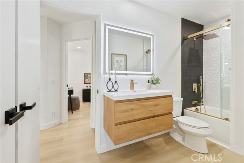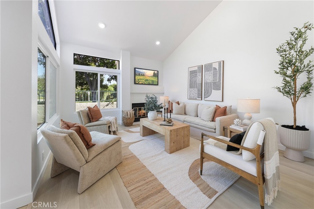 Modern Luxury Meets Privacy in the Heart of Irvine. Experience the pinnacle of turn-key living in this rare end-unit townhome, where contemporary design meets unparalleled privacy. With no neighbors above or below and only one shared wall, this residence offers the feel of a detached home. Architectural Sophistication. Step into a light-filled sanctuary defined by soaring double-height ceilings and expansive windows that frame serene views of the surrounding greenery. The open-concept living area features wide-plank flooring and recessed LED lighting, anchored by a sleek fireplace and a dramatic architectural staircase. Gourmet Kitchen & Dining. The reimagined kitchen is a study in modern minimalism, featuring: * Custom White Oak Cabinetry with matte black hardware. * Pristine Quartz Countertops and a contemporary gooseneck faucet. * A seamless transition to the dining area, perfectly positioned for both intimate meals and larger gatherings. Spa-Inspired Retreats. The bathrooms have been elevated to five-star standards, boasting: * A European-style floating oak vanity and a back-lit LED mirror. * A custom shower-over-tub with a frameless glass shower door. * High-contrast matte black and gold accents set against designer tile. The Ultimate Outdoor Oasis. Rare for the area, the spacious private backyard is a true extension of the home. Relax on the designer-paver patio surrounded by lush landscaping and blooming roses—the perfect backdrop for al fresco dining or evening cocktails under the Irvine sky. Prime Location & Amenities. Enjoy direct access to your one-car garage and an adjacent carport. As part of this sought-after community, you are steps away from resort-style amenities, including a sparkling pool, spa, and tennis courts. Ideally located minutes from top-rated schools, Flagstone Park, and world-class dining, this home is truly move-in ready.