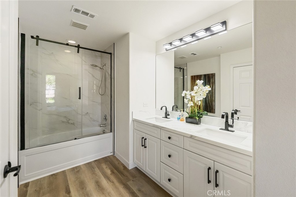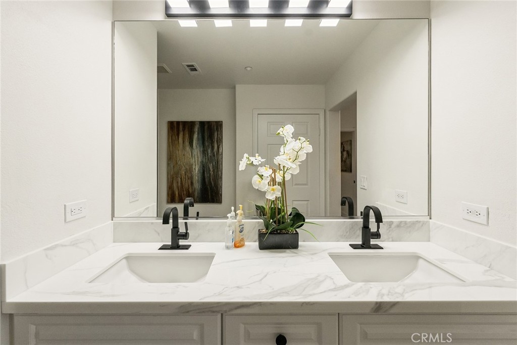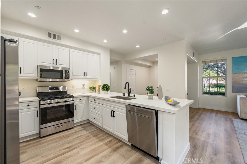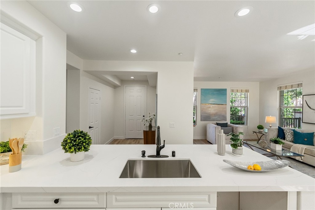 Fully Remodeled End Unit in Woodbury – Single-Level Luxury Living! Step into this beautifully renovated, light-filled end unit in the highly sought-after Woodbury community. Every detail has been thoughtfully updated, offering a fresh, modern aesthetic throughout. The spacious entry leads to an open-concept kitchen featuring sleek white cabinetry, a breakfast bar perfect for casual dining, and seamless flow into the living area. The expansive primary suite includes a walk-in closet and a serene retreat-like atmosphere. Guests will appreciate the stylish half bath, and the full laundry area with side-by-side washer and dryer adds everyday convenience. Enjoy year-round comfort with central air conditioning, plus peace of mind thanks to a newer furnace and water heater. An attached one-car garage provides secure parking and extra storage. Located just minutes from Woodbury Elementary, this resort-style community offers 7 pools, spas, gardens, BBQ areas, and courts for volleyball, basketball, tennis, and more.
