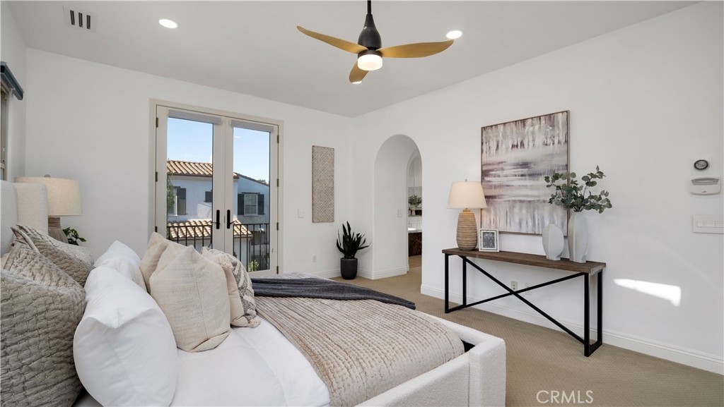 Welcome to 43 Conservancy, a refined and inviting residence that blends modern Spanish architecture with timeless elegance and everyday comfort. Filled with natural light and thoughtfully designed throughout, this detached home offers warmth, charm, and understated luxury from the moment you arrive. The main level unfolds with intention, beginning with a gracious living room and formal dining space ideal for hosting and entertaining. A private courtyard tucked just off the hall creates a serene indoor-outdoor retreat—perfect for a quiet pause or morning reflection. Toward the rear of the home, the refreshed kitchen and cozy family room, anchored by a fireplace, invite relaxed evenings and meaningful gatherings. The kitchen has been tastefully updated with white shaker cabinetry and quartz countertops, and is equipped with premium appliances including a Bertazzoni cooktop with high-BTU brass burners and Samsung WiFi-enabled stainless steel appliances. A French door opens to a quiet, private backyard designed for effortless outdoor living, while a salt-free water softener adds everyday comfort. Thoughtful modern upgrades enhance the home, including Google Nest smart lock, video doorbell, thermostats, floodlight cameras, and smoke alarms, along with touchless Legrand Adorne Wave switches, upgraded LED recessed lighting, Toto toilets, and Delta faucets. Energy efficiency is elevated with 24 high-production Qcells solar panels, plus a 220V EV-ready outlet in the garage. Upstairs, all bedrooms are thoughtfully arranged alongside a convenient laundry room. The primary suite is a peaceful sanctuary featuring a spa-inspired bath with tiled walk-in shower, soaking tub, and an upgraded walk-in closet. One secondary bedroom includes an en suite bath, while two additional bedrooms—one with a spacious balcony and another with a charming Juliet balcony—offer flexibility for modern living. Residents of Portola Springs enjoy resort-style amenities including Olympic and Junior Olympic pools, parks, trails, sports courts, tennis, and beach volleyball. Ideally located near Woodbury Town Center, Irvine Spectrum, Laguna Beach, and John Wayne Airport, 43 Conservancy is more than a home—it is the backdrop for your next chapter and a true expression of elevated Irvine living.