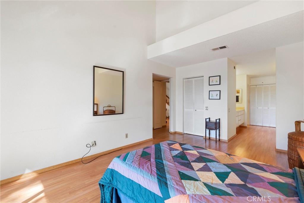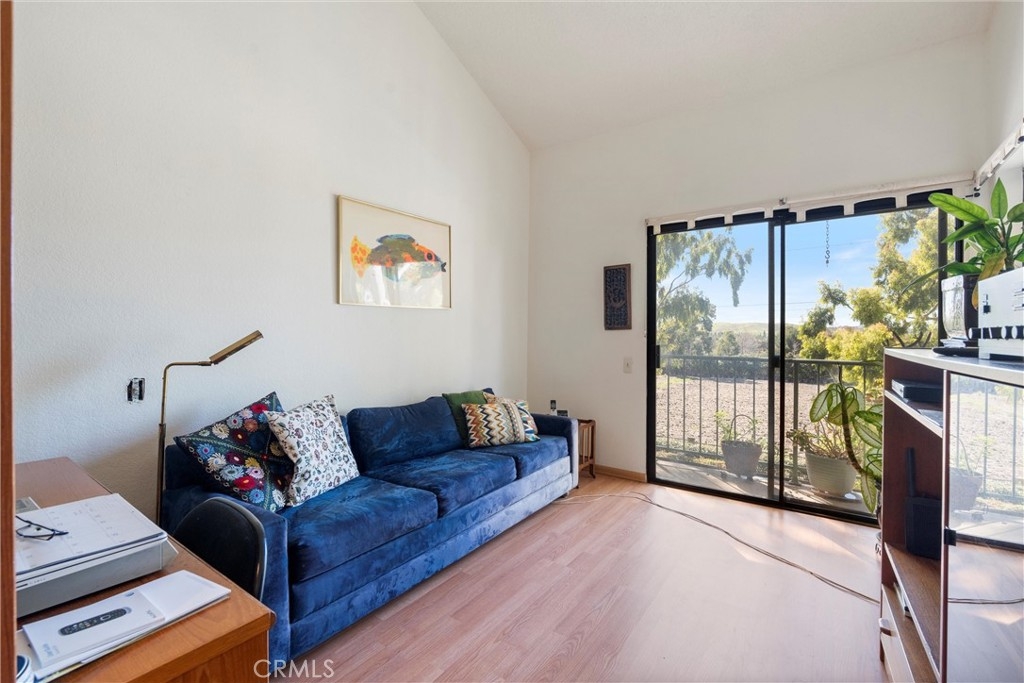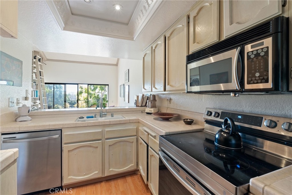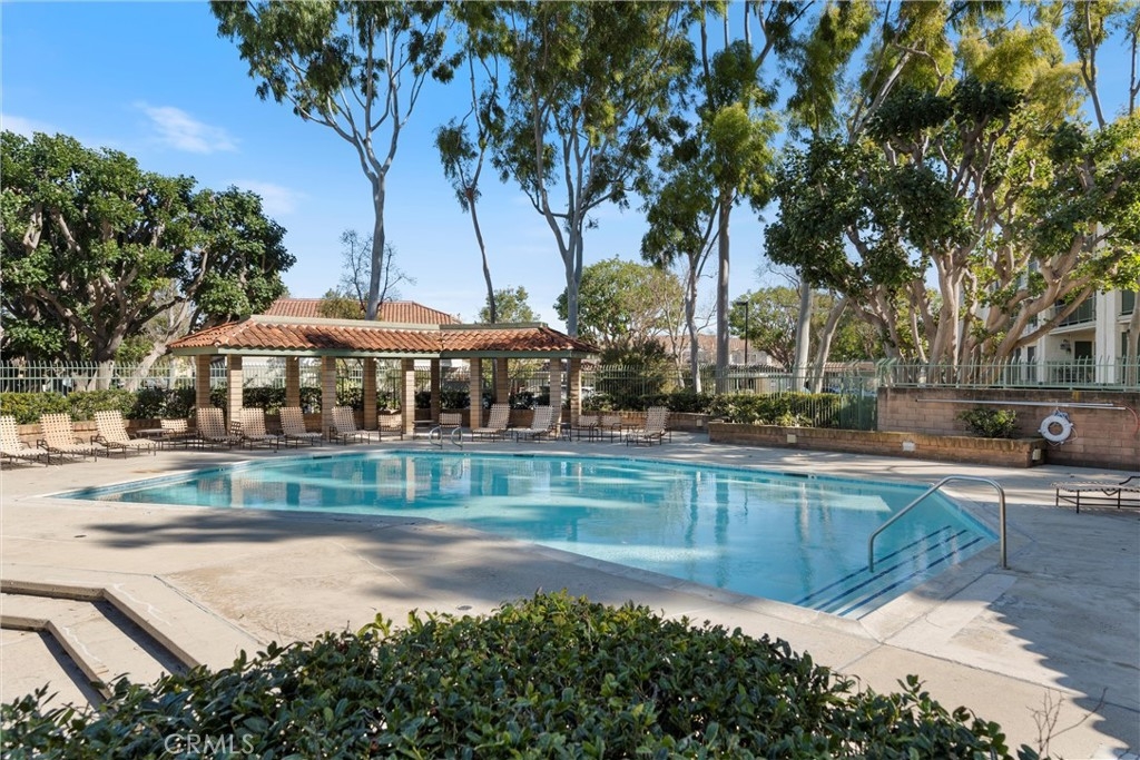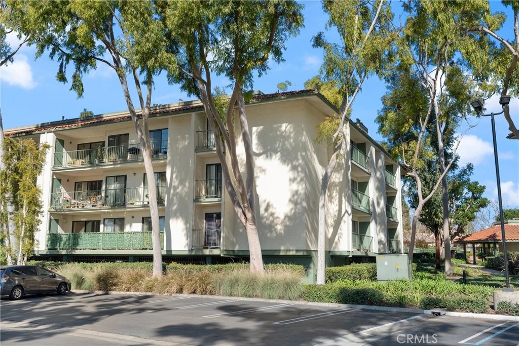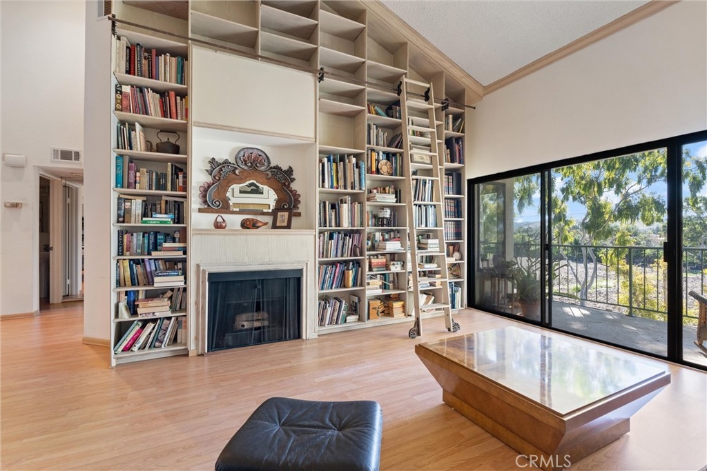 Step into a top-floor penthouse with a breathtaking view! This condo features a unique floorplan, open layout, high cathedral ceilings, and a distinctive loft that can serve as a 3rd bedroom. One of its standout features is a striking fireplace in the living room, perfect for cozy evenings. Additionally, there's a dramatic wall bookshelf stretching from ceiling to floor, complete with a sliding ladder, adding a touch of sophistication and character to the space, making it truly exceptional. Being on the 3rd floor with high ceilings amplifies the sense of space. Additionally, the unit includes a convenient washer and dryer area, as well as central air conditioning and heating for year-round comfort. Enjoy the convenience of a one-car garage in secure underground gated parking and additional storage on the patio. Just steps away from the elevator for easy access and no steps. Orange Tree Communities offers amenities like a pool, spa, barbecue area, tennis and Pickleball courts, a gym, and a clubhouse. The prime location near UCI and Irvine Valley College is the perfect finishing touch to this outstanding condominium.
