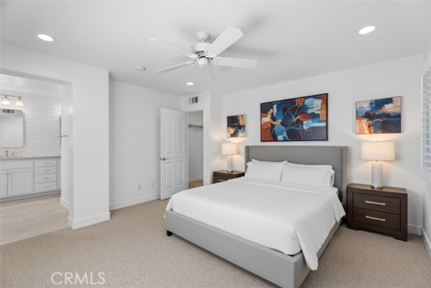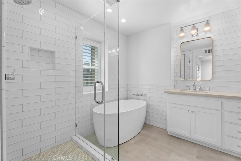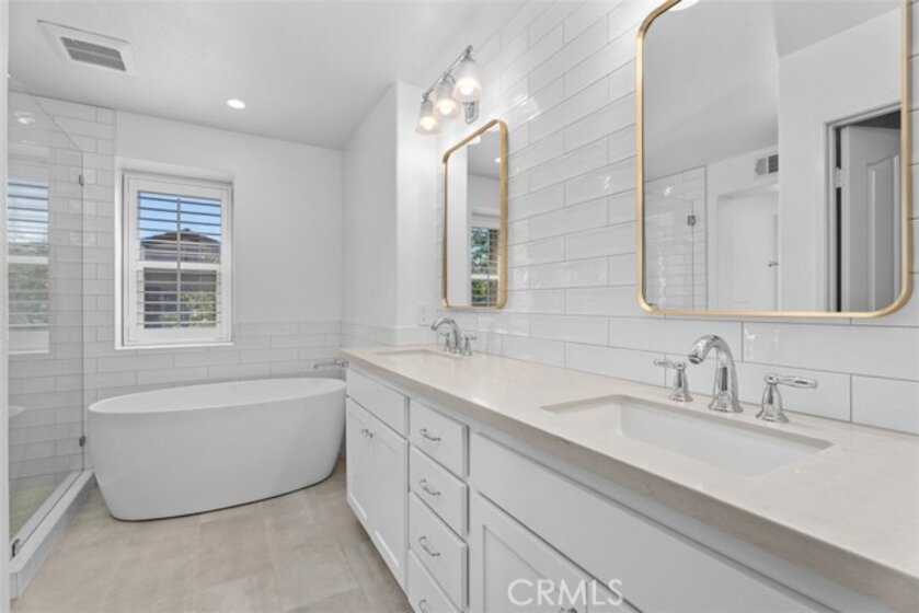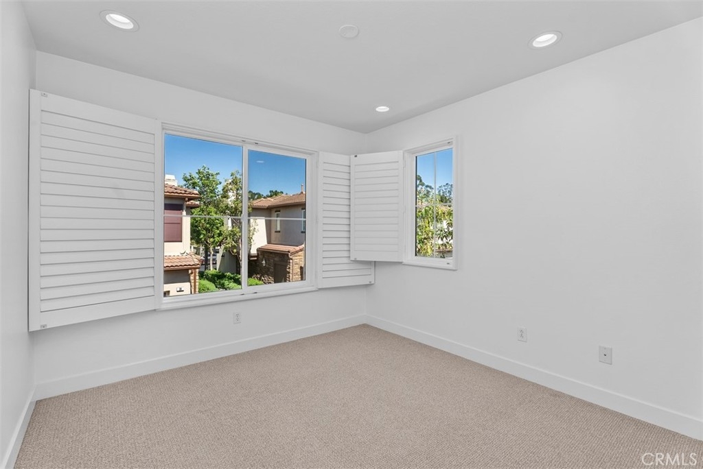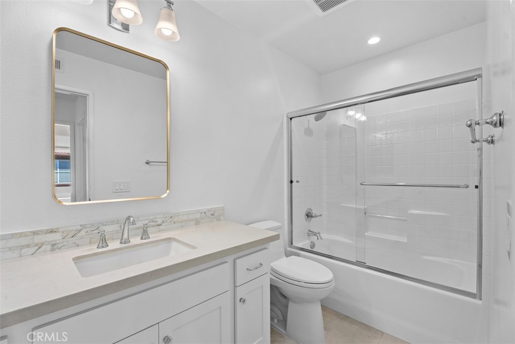 High-End, Turnkey Remodel with Functional Design, True Indoor–Outdoor Entertaining Layout & Location Within Desirable West Irvine + Lifestyle Access & The Market Place - Fully remodeled and thoughtfully upgraded, this Southwest-facing 3-bedroom, 2.5-bath townhome offers a bright, open layout and exceptional indoor-outdoor living. The main level features an open-concept living and dining area that flows seamlessly into a tastefully remodeled kitchen, complete with stainless steel appliances, Quartz Counters, contemporary backsplash, and a spacious walk-in pantry (2016 & 2021). French doors, with Roll-in screens open to an oversized patio—perfect for entertaining—overlooking a peaceful, secluded walking path. Upstairs, a versatile bonus den with built-in desk provides the ideal space for a home office or study area. The well-sized primary suite includes an oversized walk-in closet and a high-end remodeled bathroom featuring a freestanding soaking tub and walk-in shower (2016/2021). Two additional bedrooms are generously sized and served by an updated secondary bathroom (2016/2021). A dedicated laundry room with storage and shelving adds convenience. This exceptionally well-maintained home offers additional highlights including Google Fiber Ready, tasteful wood flooring (2021) & crown molding downstairs, carpet with extra soft padding upstairs, 2019 water heater, a downstairs powder room with new toilet (2021), a private front porch entry, and direct access to an oversized garage from the rear of the home. Located in desirable West Irvine, residents enjoy access to resort-style amenities including pool, spa, tennis courts, parks, and playgrounds, all just moments away. Close proximity to The Market Place for Shopping, Dining and Entertainment as well as scenic hiking and biking trails completes the lifestyle offering of this exceptional home.