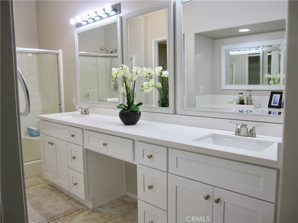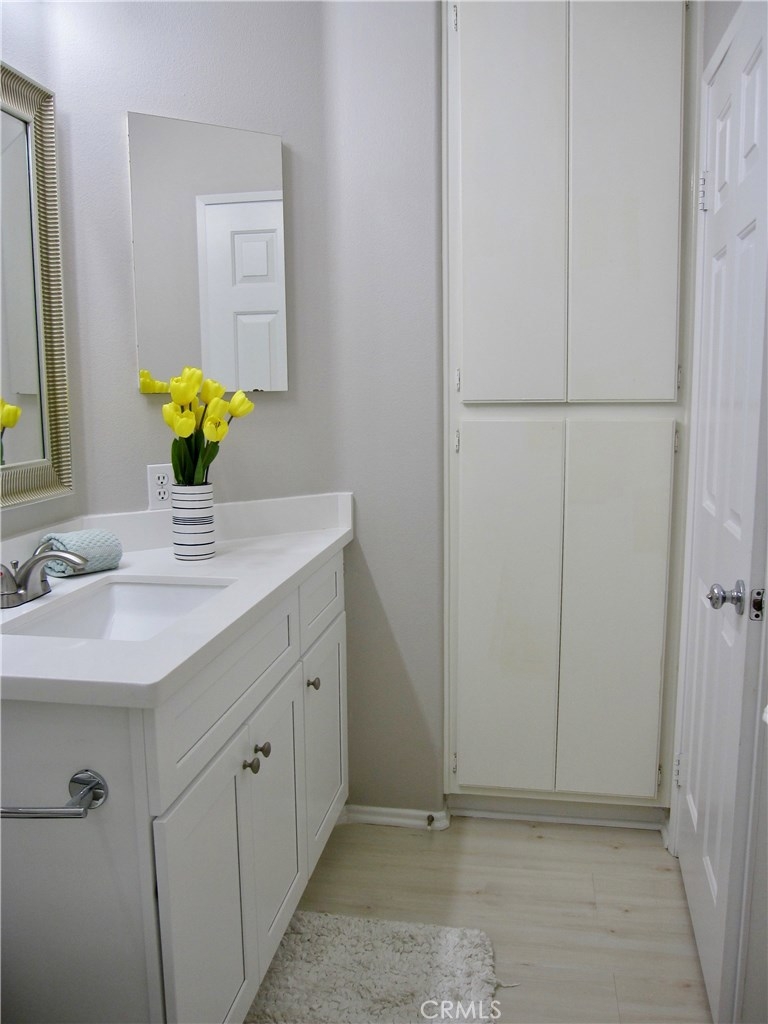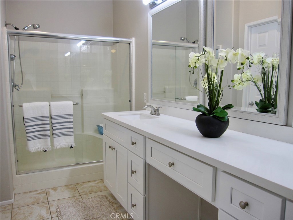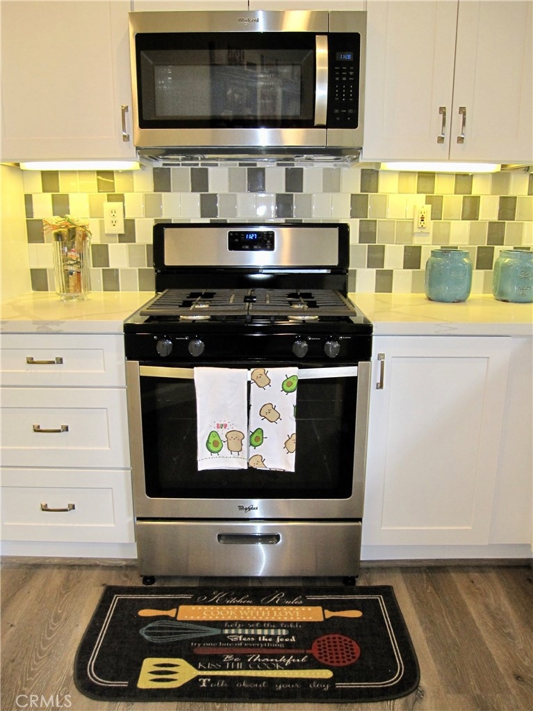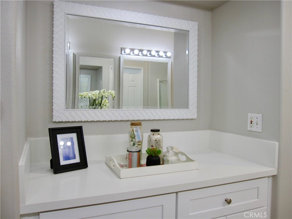 Welcome home to wow! Immaculate 3 Bedroom, 3 bath home located in prestigious gated Northwood Pointe community. Great open floor plan. Expansive living room has new waterproof laminate wood floors, soaring 18' ceilings, lots of windows bring warm natural light, fireplace, tv ready setup mount, shutters and media/storage cabinet with new quartz counter. Gather family and friends in this beautifully remodeled kitchen with new white shaker style cabinets with under lighting, glass front doors, quartz counters, tiled backsplash, new stainless appliances, deep single basin sink, fixtures and recessed lights. Dining room has a newly added row of extra cabinets. Main floor bedroom with mirrored closet doors could option as an office. Fresh interior paint & baseboards. Downstairs has all new waterproof laminate wood flooring. New carpet upstairs. Large master suite with new dual sinks shaker cabinets vanity & walk in closet. Third bedroom is updated en-suite. Indoor laundry room leads to 2 car garage. Peaceful backyard has several types of fruit trees, arbored pergola and low maintenance landscape. Situated in a prime quiet location with no unit behind. Outstanding HOA pool, spa, bbq, basketball court & tot lot. Minutes to Award winning schools including Canyon View Elementary, Sierra Vista Middle & Northwood HS. Close to shops, eateries, parks, walking/hiking/biking trails, Tustin Marketplace, Irvine Spectrum, toll roads & FWYS. Low HOA dues and mello roos.