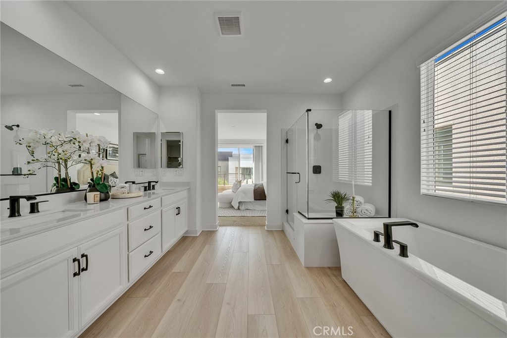 Fabulous two-story contemporary-style DETACHED residence. Located in a beautiful Great park, there is a room and a full bathroom downstairs, along with a cozy courtyard and a terrace.The layout includes four bedrooms, four full bathrooms, and a versatile loft space. The entire house features a classic black-and-white color scheme. The home showcases classic, easy-to-maintain upgrades. You’ll appreciate the expansive, well-paved trails weaving through the community, ideal for walking, biking, or driving. Beyond that, the area offers a variety of attractions to enjoy, from the new Water Park to tennis courts, soccer fields, and an ice skating rink. Situated in the coveted Irvine School District, this home is an excellent choice for both living and rental investment. It seamlessly blends luxury, comfort, and convenience. Walking distance to Solis Park School (K-8) and Award Winning Portola High School, as well as the park and clubhouse. Solar system fully purchased.