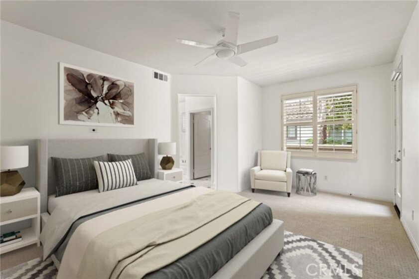 Welcome to this stunning 3-bedroom, 3-bathroom + LARGE LOFT condo, in the highly sought-after and GATED Northwood Estates community, perfectly positioned on a premium park-front lot. This corner-unit home offers TWO PRIMARY ENSUITE BEDROOMS (one downstairs and one upstairs) Downstairs includes a primary bedroom plus an additional bedroom and laundry room, making it ideal for multigenerational living. The open layout flows effortlessly, with a spacious living room featuring a cozy fireplace, hardwood floors, and fresh paint throughout. The kitchen boasts wood cabinetry, granite countertops, a built-in range, and stainless steel appliances, opening to a dining area. French doors lead to the wraparound patio, perfect for indoor-outdoor entertaining and relaxing under trees. Upstairs, the second primary suite offers comfort and privacy, accompanied by a spacious loft with a built-in desk and deck access with serene park views, ideal for a work-from-home space. Located within the highly acclaimed Irvine School District and just steps from the community park, clubhouse, and resort-style pool, this home offers 24-hour gated security—making it a rare opportunity that combines luxury, privacy, and an unbeatable location.