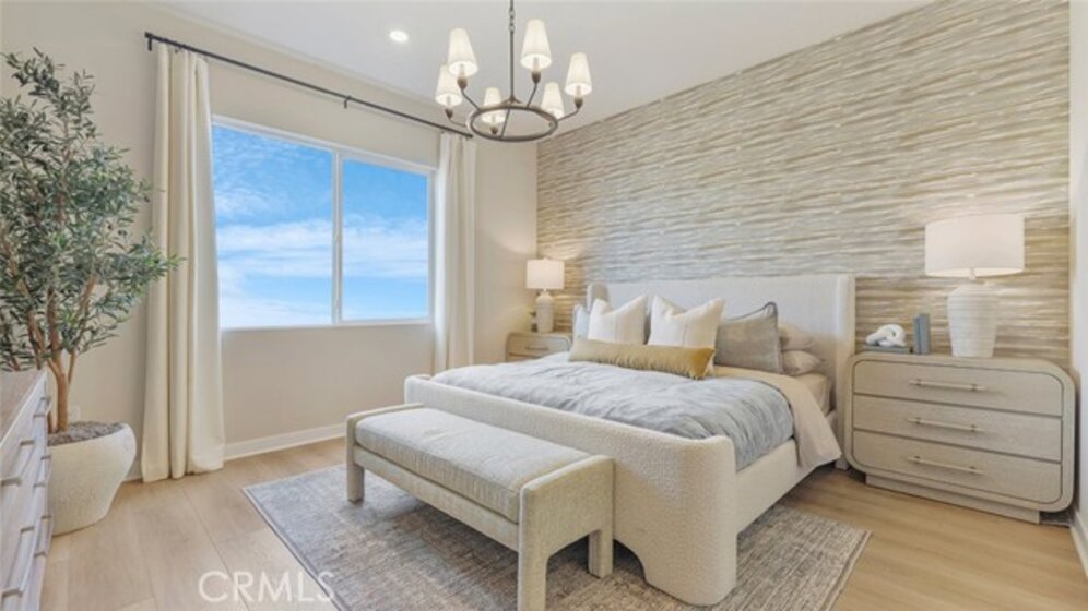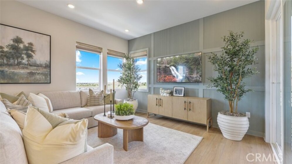 Upstairs, the third floor includes two bedrooms that flank a spacious loft with an attached deck. The highlight is the luxurious owner’s suite, complete with a spa-inspired bathroom and a walk-in closet. This home is part of an eight-unit building, yet it occupies one full side and offers its own private entrance—providing the feel of a standalone home. Amaris is a new community of stacked flats in Luna Park at Great Park Neighborhoods in Irvine, CA. Residents enjoy active lifestyles with fantastic onsite amenities, including a sparkling swimming pool, clubhouse, multiuse trails and much more. The 5 and 405 freeways offer simple commutes and travel, and eligible students will attend award-winning schools in the Saddleback Valley Unified School District. The Irvine Spectrum Center provides convenient access to the best of local shopping, dining and entertainment.