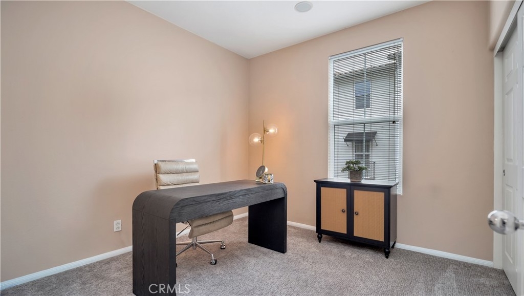 Welcome to 47 Nightshade, a beautifully appointed corner home in Irvine’s coveted Quail Hill Village, blending elevated design with everyday comfort. One of the few residences offering no steps leading to the front door, this thoughtfully designed two-story floor plan includes a main-level bedroom and full bath, ideal for guests, multigenerational living, or a private home office. Inside, discover rich blue tones, designer lighting, and an elegant gas fireplace anchoring the open-concept living area. The seamless transition from living to dining to kitchen makes entertaining effortless, while expansive windows capture scenic views of the surrounding greenery, creating warmth and connection throughout. Upstairs, the primary suite impresses with soaring ceilings, a sleek oversized metal ceiling fan, for a modern and airy retreat. Step outside to a covered porch, a perfect extension of your living space. Begin your mornings with a peaceful cup of coffee or unwind in the evening with al fresco dining and tranquil park views. As a premium corner unit, this home offers added privacy and is just steps from the Common Park, fitness center, and year-round heated pool. Set within a resort-inspired community, Quail Hill provides access to multiple parks, scenic trails, and award-winning Irvine Unified schools, including University High School. Conveniently located near major freeways (405, 5, 133), this residence offers the perfect balance of accessibility and tranquility.