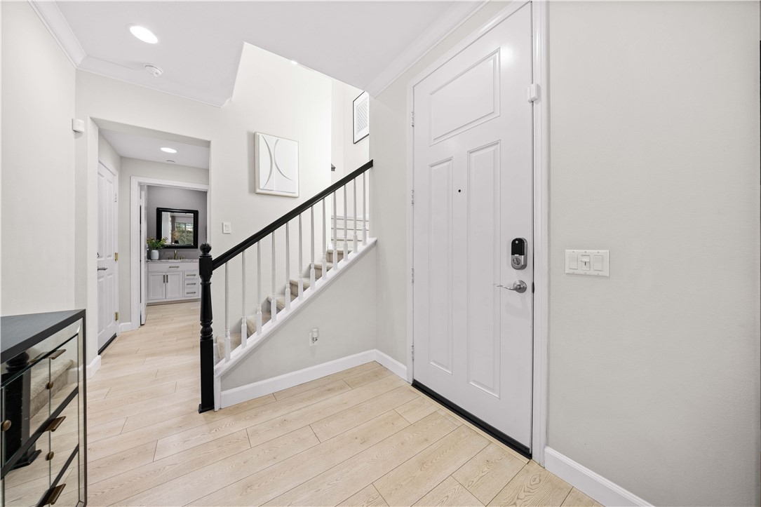 Exquisite Private Corner Lot in the Heart of Portola Springs, Irvine – No Homes Behind for Ultimate Privacy and Tranquility! This fully detached Primrose Collection Residence 2 is located in the desirable Portola Springs community in Irvine. The home spans 1,921 sq ft with 3 bedrooms, 2.5 bathrooms, and a spacious loft. Situated on a premium corner lot, the property boasts a large backyard with no homes behind, ensuring ultimate privacy. The chef-style kitchen features quartz countertops, a large island, full backsplash, shaker-style cabinets, and stainless steel appliances. The spacious upstairs loft offers versatile space for an office, game room, or relaxation area. The master suite includes a bathroom with quartz countertops, oversized bathtub, frameless walk-in shower, and dual vanities. Additional features include a walk-in closet with custom built-ins and windows for natural light. A highlight of the home is the expansive Zen garden in the backyard, seamlessly connected to the indoor living space through sliding glass doors. This serene outdoor area is perfect for relaxation, providing a peaceful retreat where you can enjoy the tranquility of nature. This home is also equipped with a water softener, electric vehicle charging station. Portola Springs Village offers resort-style amenities, including parks, swimming pools, clubhouses, barbecue areas, and sports courts. This home is located in the award-winning Irvine Unified School District (zoned for Portola High) and is minutes from Woodbury Town Center, Irvine Spectrum, Fashion Island, John Wayne Airport, and renowned hospitals. Convenient access to major highways, including I-5, I-405, 133, 241, and 261. Enjoy the ultimate Southern California lifestyle in a home that combines privacy, comfort, and serenity.