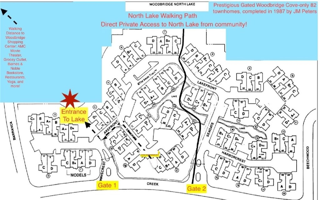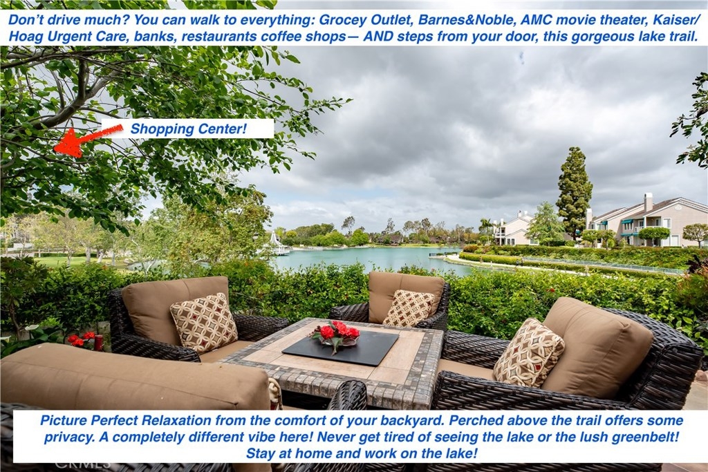 STAY AT HOME & WORK ON THE LAKE! This nearly 2,000 square feet cul-de-sac home is in a small gated community with arguably the most gorgeous turquoise color lake view anywhere in Woodbridge. These Premium View lakefront units seldom list for sale. See wildlife, stunning sunsets, and stroll the lake daily. A community unlike any other, these homes were developed last on the lake and most admired. Perched above the lake trail for more privacy, yet exclusive access is steps away (3 houses down). Across from the shopping center anchored by Ruby's, Grocery Outlet, & movie theater. The exclusivity, convenience, and vacation feel offered by this home are what make it so special. $100k in upgrades including new dual pane windows & sliders, modern kitchen with new appliances, whole-house water filtration system, flooring changed to wood. Master has a walk-in closet and a gorgeous view balcony. HOA covers fire and earthquake insurance, termite, roof, structure, and grounds. Save on insurance/gardener, save with NO MELLO ROOS. Enjoy 41 HOA amenities (WVA.org) Walk to banks, HOAG/Kaiser, Urgent Care. Convenient to UCI, COSTCO, 99 Ranch, Target, restaurants. Irvine Ranked #1 Safest City in America. Prestigious 10/10 Irvine Schools, award-winning Eastshore Elementary walking distance, and also easy to rent out if you want to own a rare piece of Irvine Real Estate for your own enjoyment in the future, this is A MUST SEE, Don’t miss this chance!