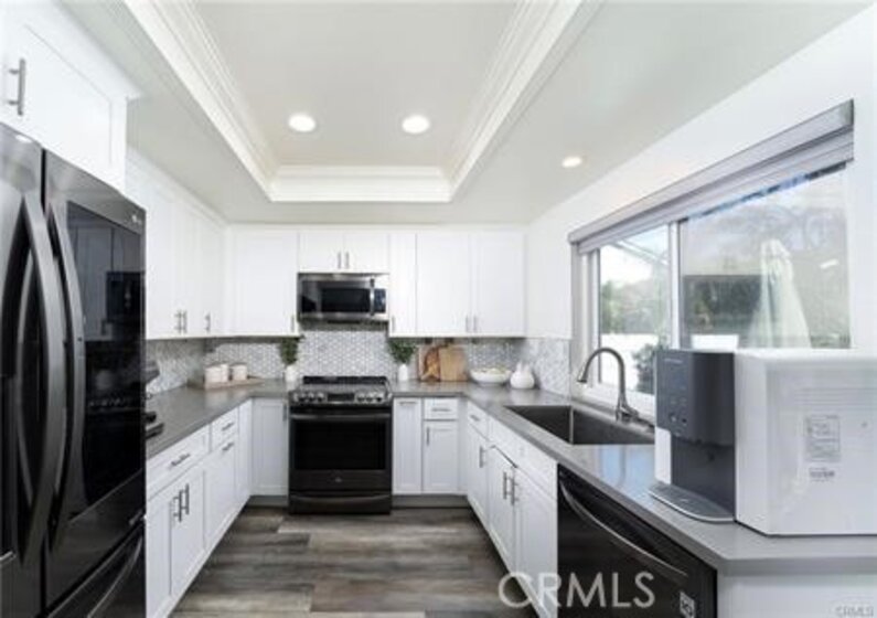Welcome home to Woodbridge in beautiful Irvine. Located in the highly sought-after Parkview Tract, this meticulously remodeled residence is truly stunning and move-in ready. The well-designed floor plan offers 3 bedrooms plus a dedicated office/den and 2.5 bathrooms. Upon entry, you are greeted by a private and cozy office tucked to the left behind elegant glass double doors—an ideal space for a home office, music or movie studio, or anything your lifestyle requires. The inviting living room features soaring ceilings and abundant LED lighting, creating a bright and welcoming atmosphere that flows seamlessly to the patio and cozy backyard—perfect for relaxing or entertaining. The gorgeous kitchen showcases white cabinetry, quartz countertops, designer-inspired honeycomb backsplash, and newer appliances. Wood-look luxury vinyl plank flooring throughout the home provides both beauty and durability, while high-end newer double-pane windows enhance comfort and energy efficiency. Upstairs, you’ll find a spacious en-suite primary bedroom along with two secondary bedrooms and a guest bathroom. The home is zoned for award-winning schools, including Woodbridge High School, South Lake Middle School, and Meadow Park Elementary. Woodbridge HOA amenities are second to none, offering something for everyone with 22 pools, 16 spas, 24 tennis courts, pickleball courts, lake activities, and multiple playgrounds. Enjoy a short drive to beautiful beaches, John Wayne Airport, UCI, South Coast Plaza, and an array of local restaurants, supermarkets, and shopping. This central Irvine location perfectly blends big-city convenience with the charm and sense of community Woodbridge is known for. Additional highlights include a two-car garage and a driveway that accommodates two additional vehicles. Welcome home!